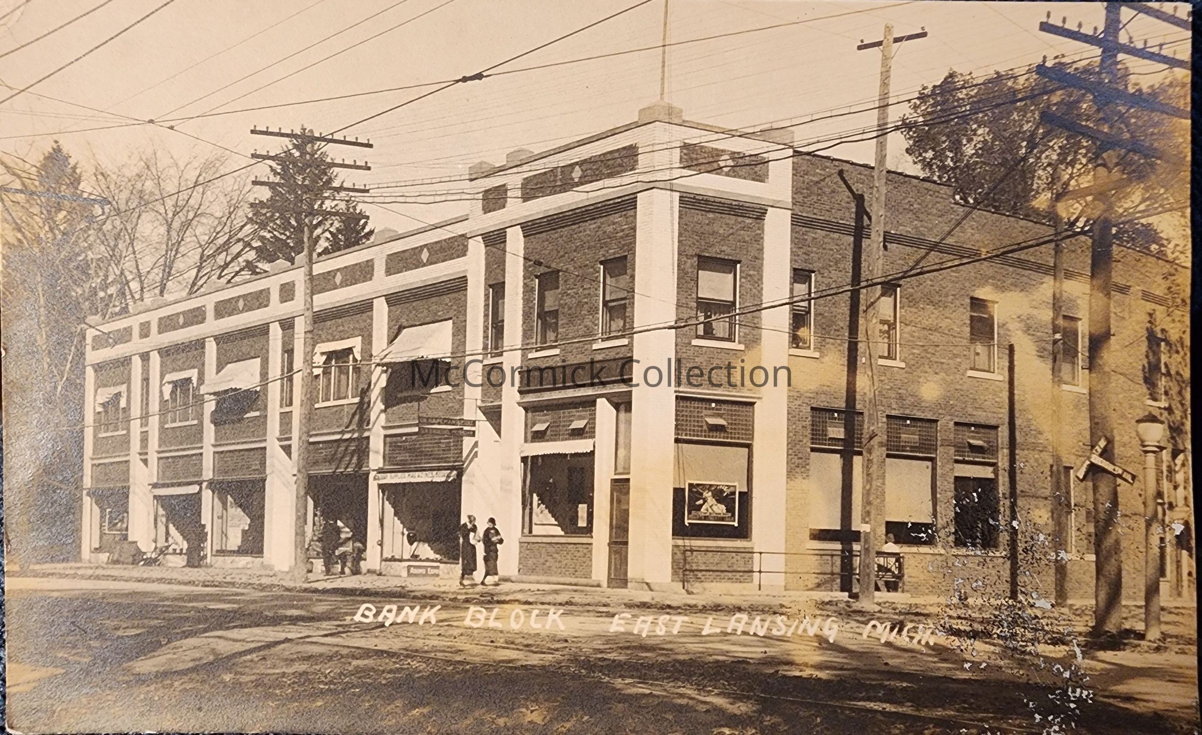 Bank Block, East Lansing, Mich., RPPC
