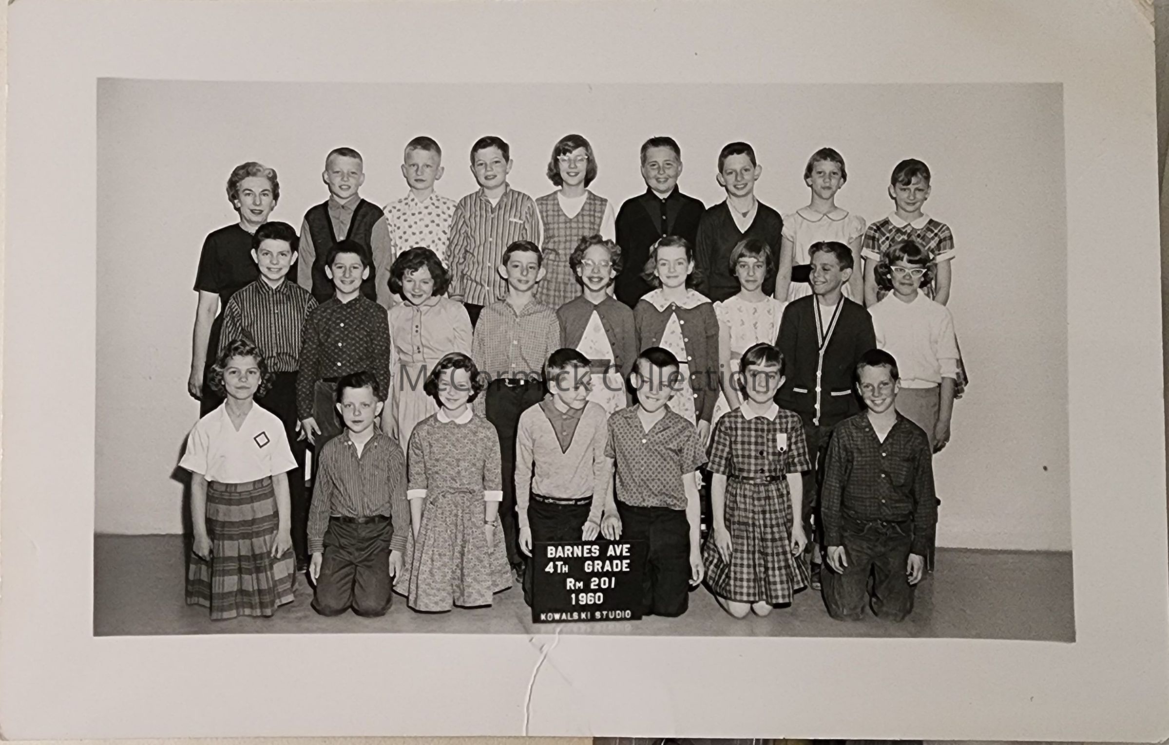Real photo postcard of Barnes Ave School fourth grade class in 1960 by Lansing photographer Kowalski.
