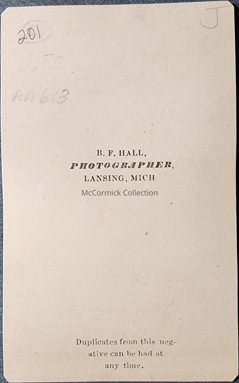 Carte de visite photograph of an unidentified child by Lansing photographer Hall.