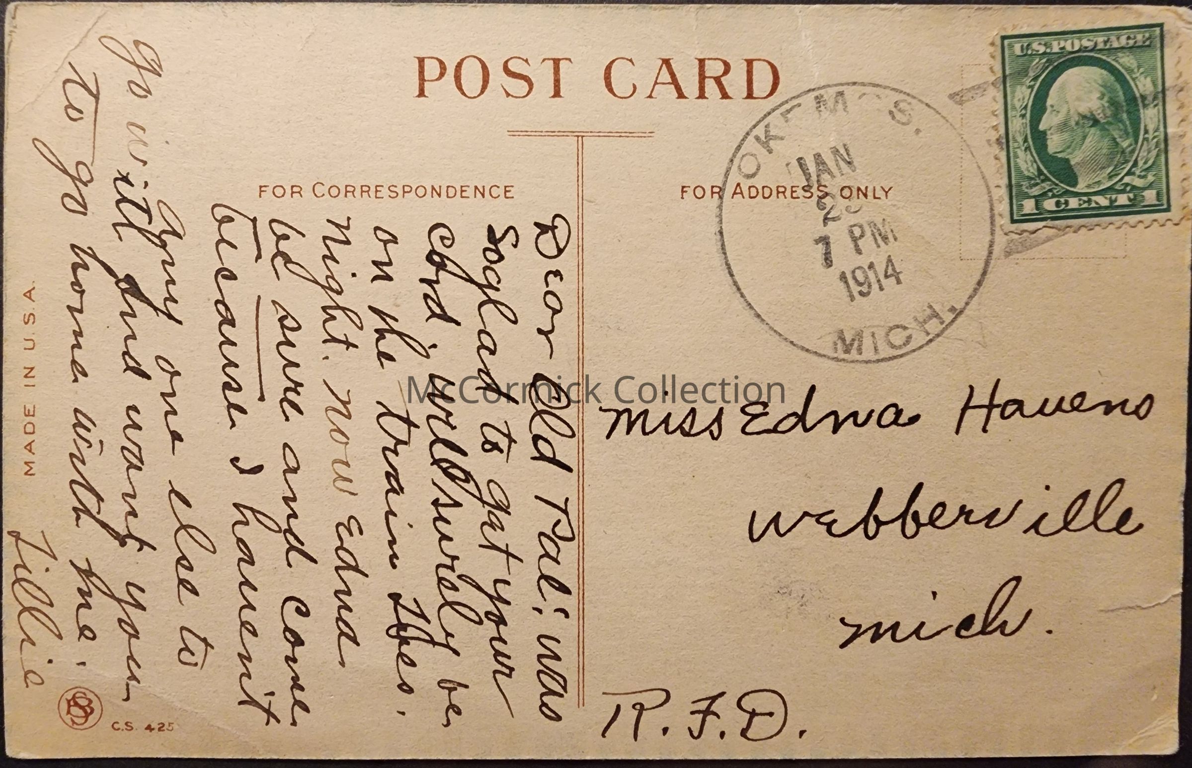 Okemos, Mich., 1914, Postcard