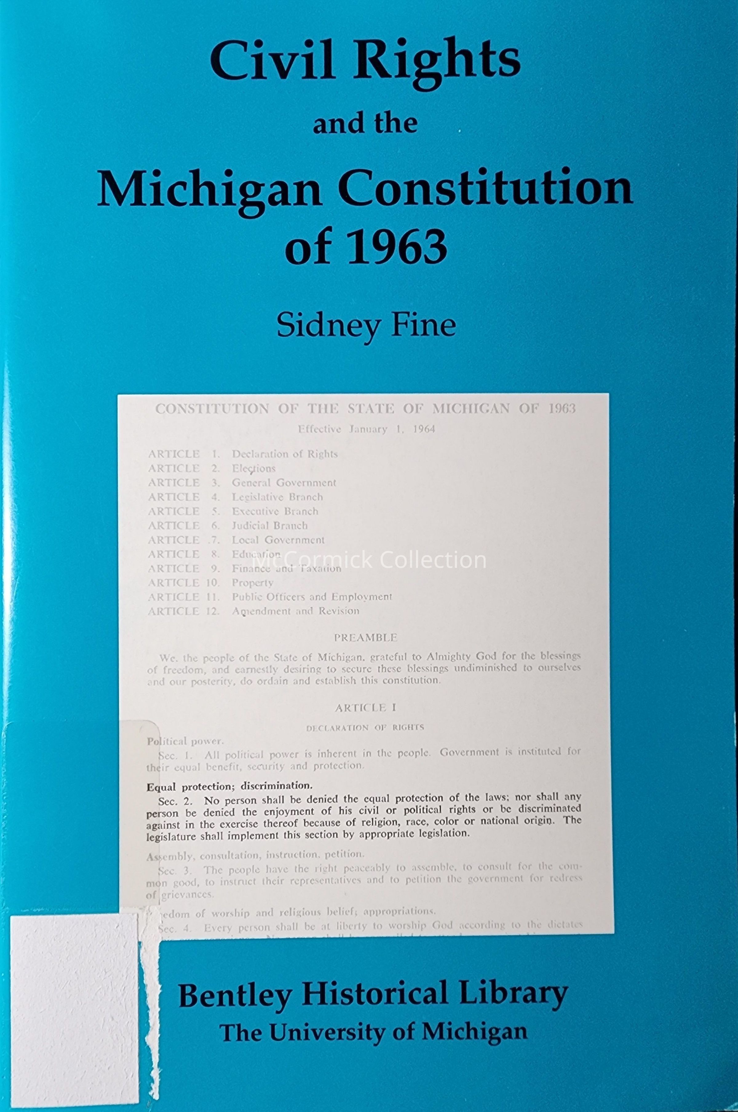 Civil Rights and the Michigan Constitution of 1963 by Fine
