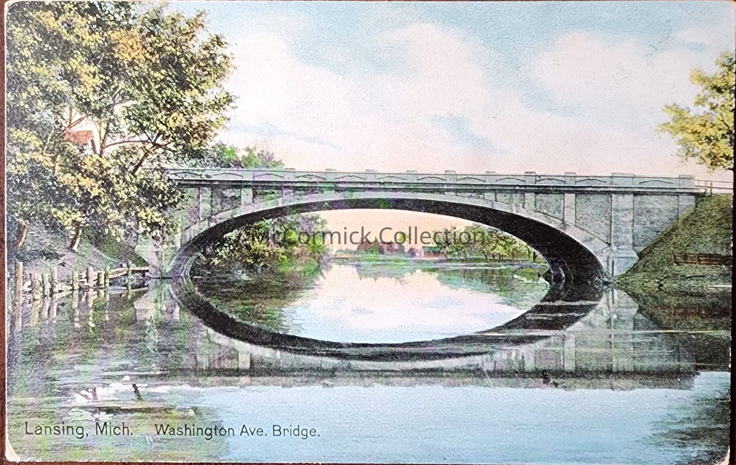 Washington Ave. Bridge, Lansing, Mich. Postcard