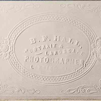 Tintype photograph of Hattie Pike in a paper frame by Lansing photographer B.F. Hall.