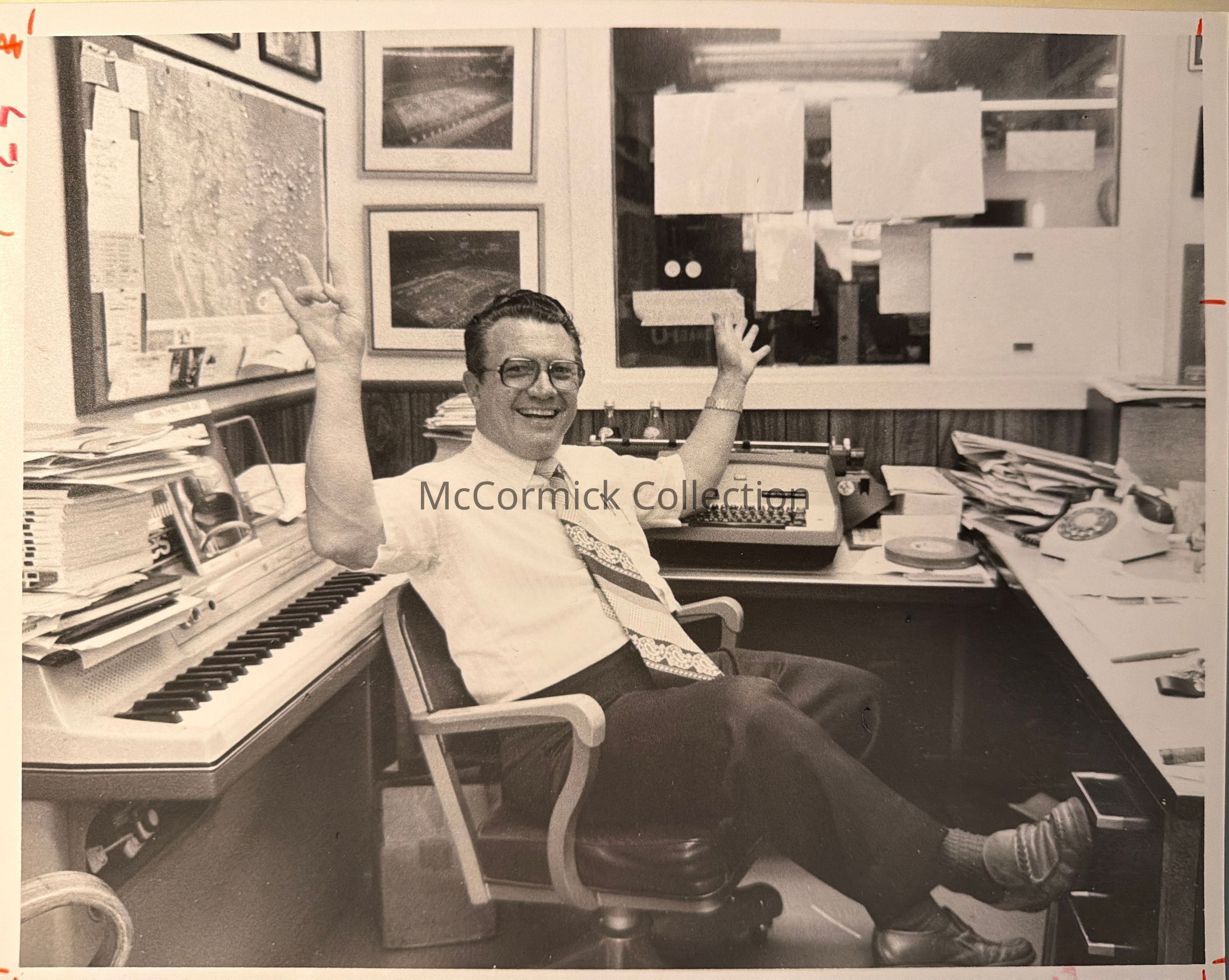 Press photograph of Bill Moffit, former assistant director of the Spartan Marching Band at MSU, taken in 1979 as director of the Houston Cougar Band.