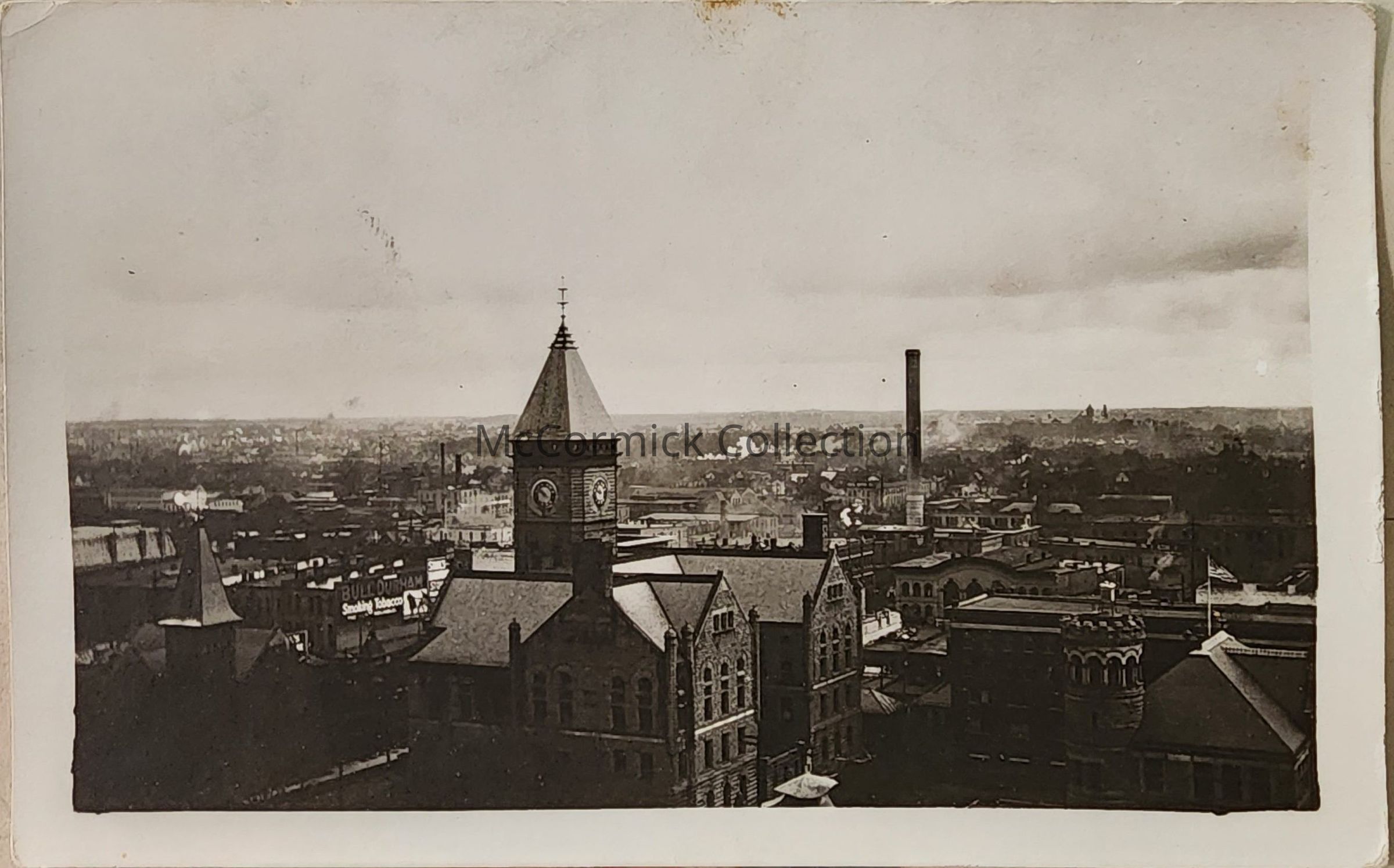 Bird's Eye View of Downtown Lansing from Calitol RPPCDescription