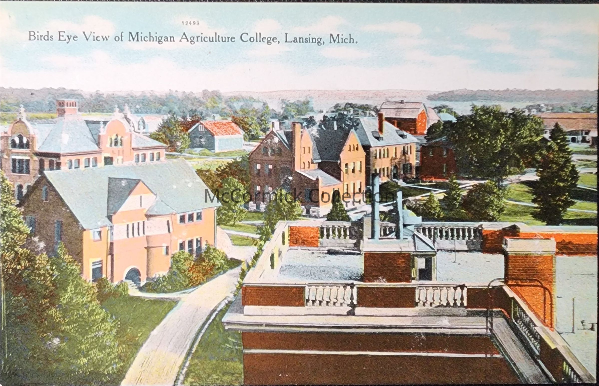 Birds Eye View of Michigan Agriculture College, Lansing, Mich. Postcard