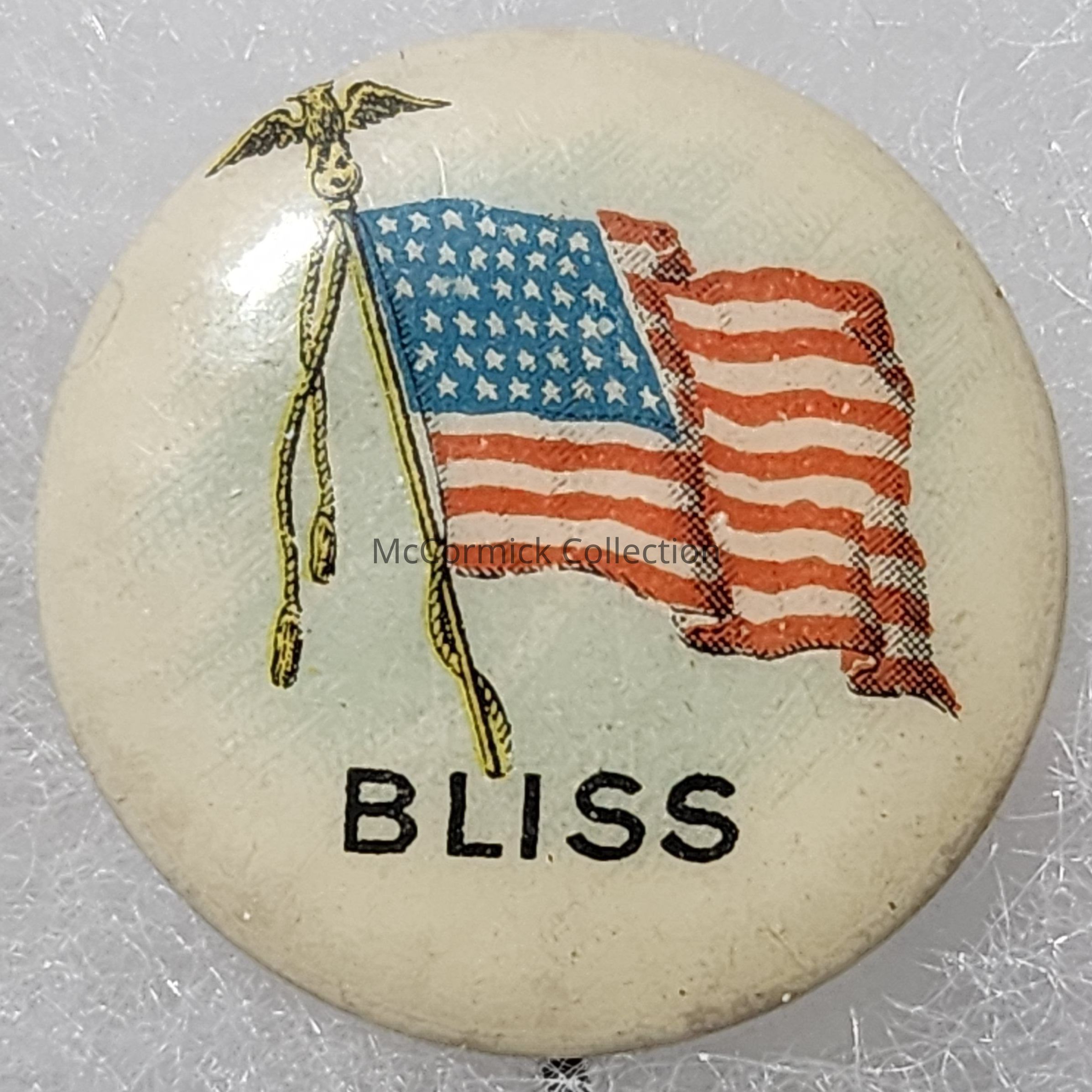 A 7/8" button for Aaron T. Bliss for Governor, featuring an American flag.