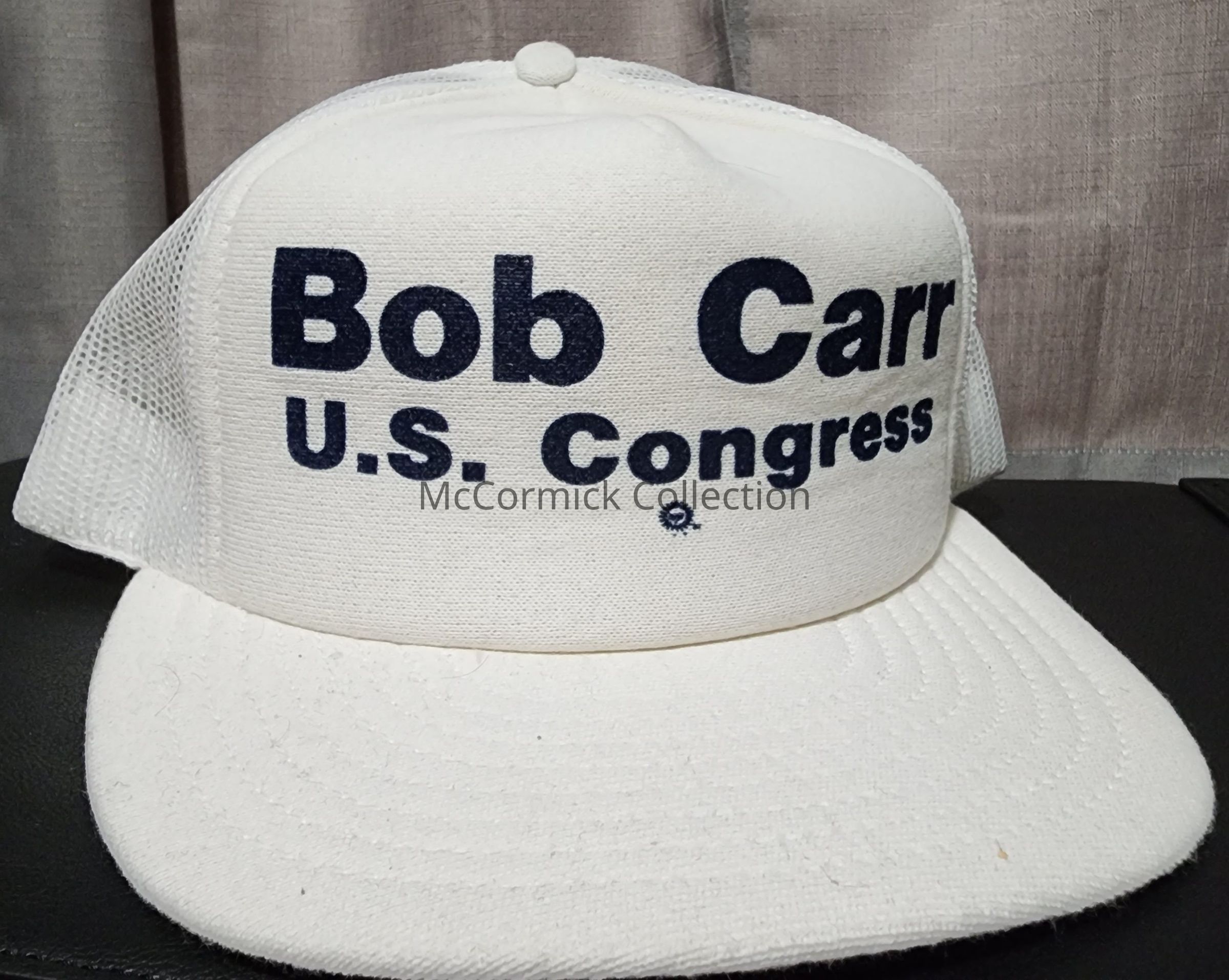 White hat with blue letters from a campaign of Congressman Bob Carr of Michigan.