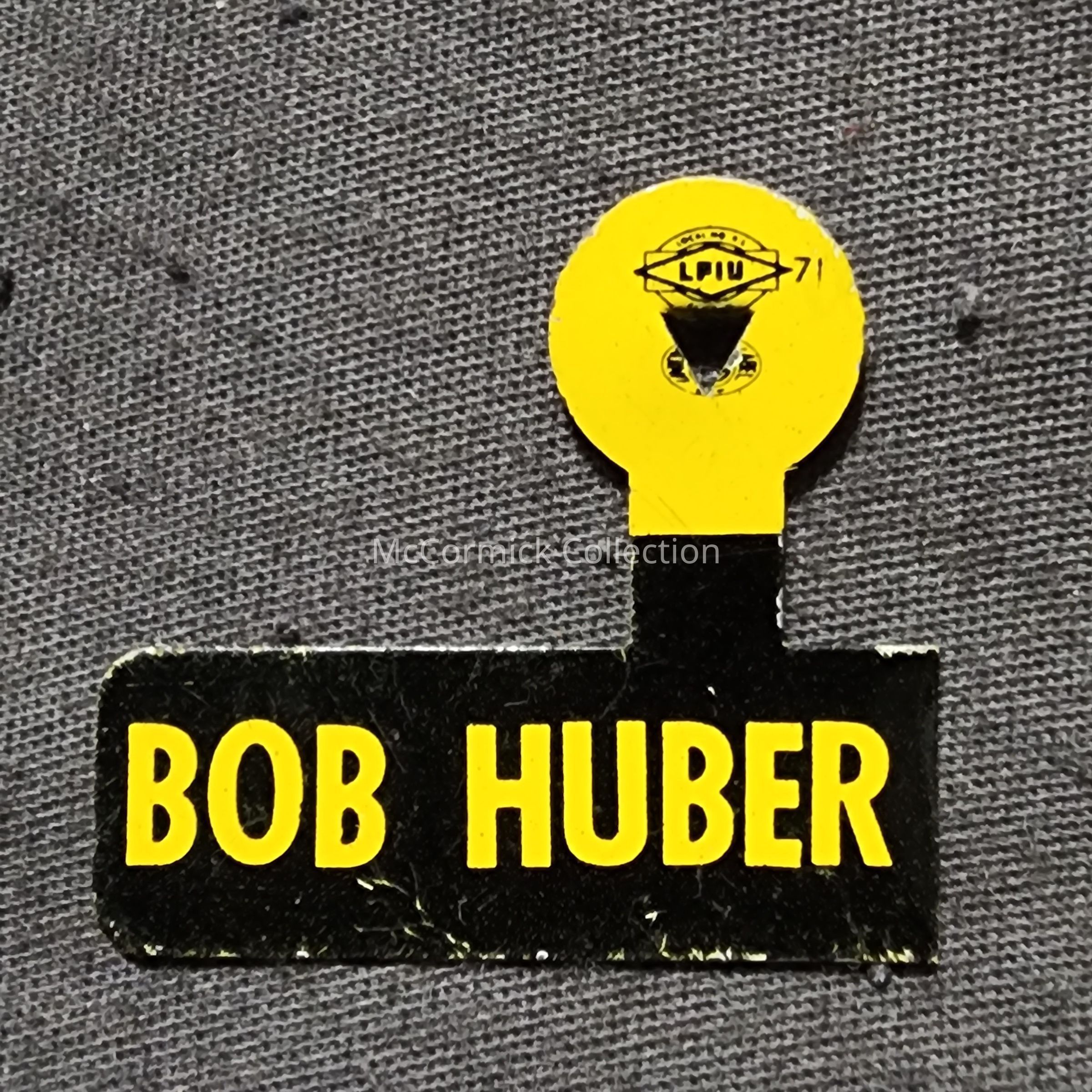 A black and yellow political tab for Bob Huber.