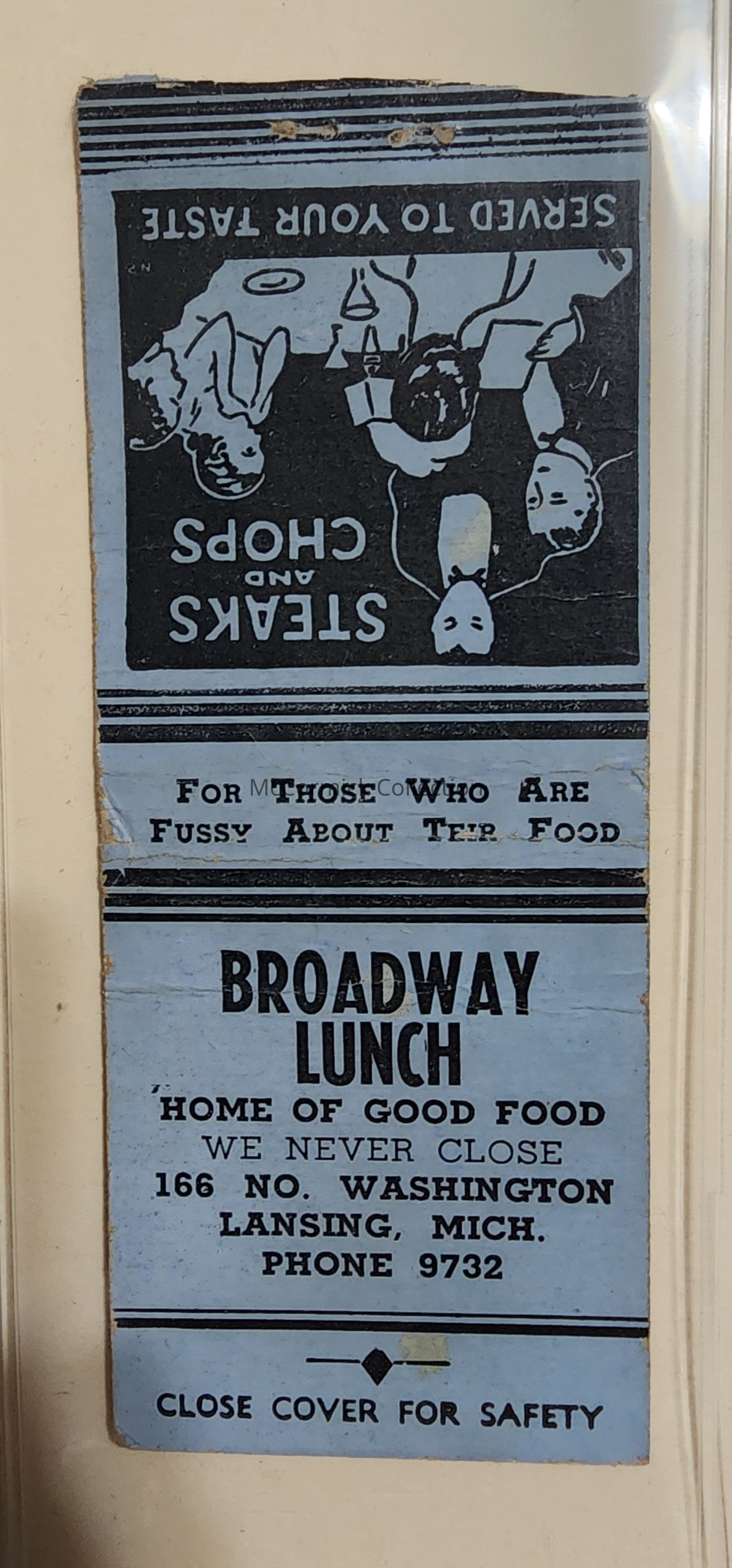 Broadway Lunch, Lansing, Mich. Matchbook