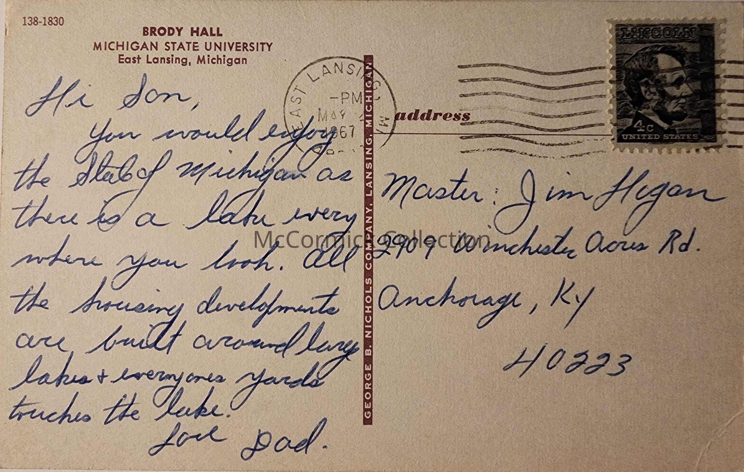 Postally used, East Lansing 1967 postmark.