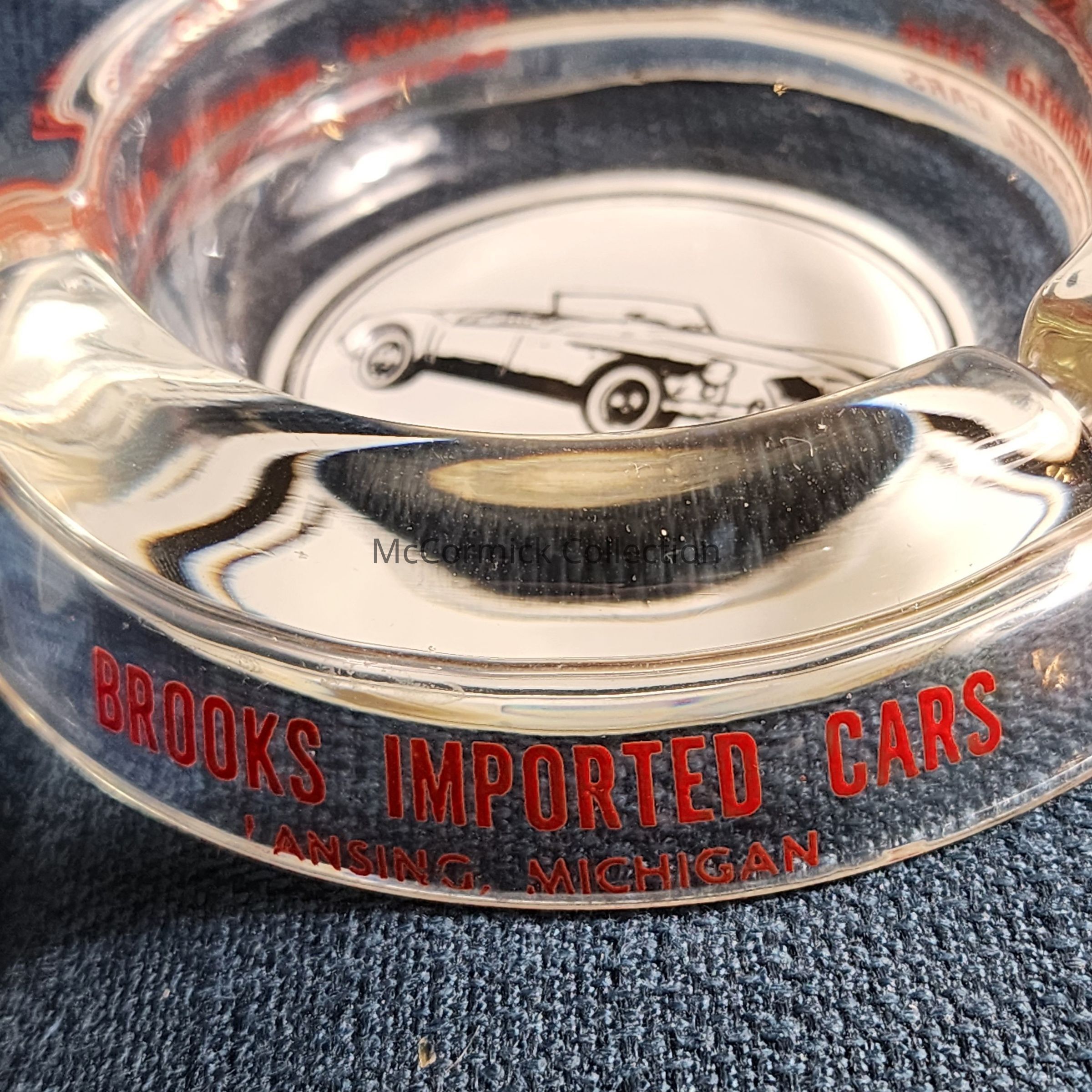 Glass ashtray for Brooks Imported Cars of Lansing, Michigan.