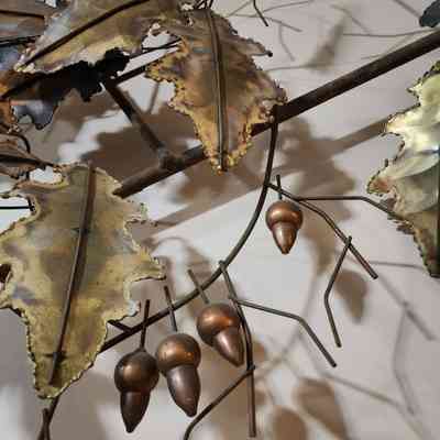 C. Jere Oak Leaves and Acorns Metal Wall SculptureDescription