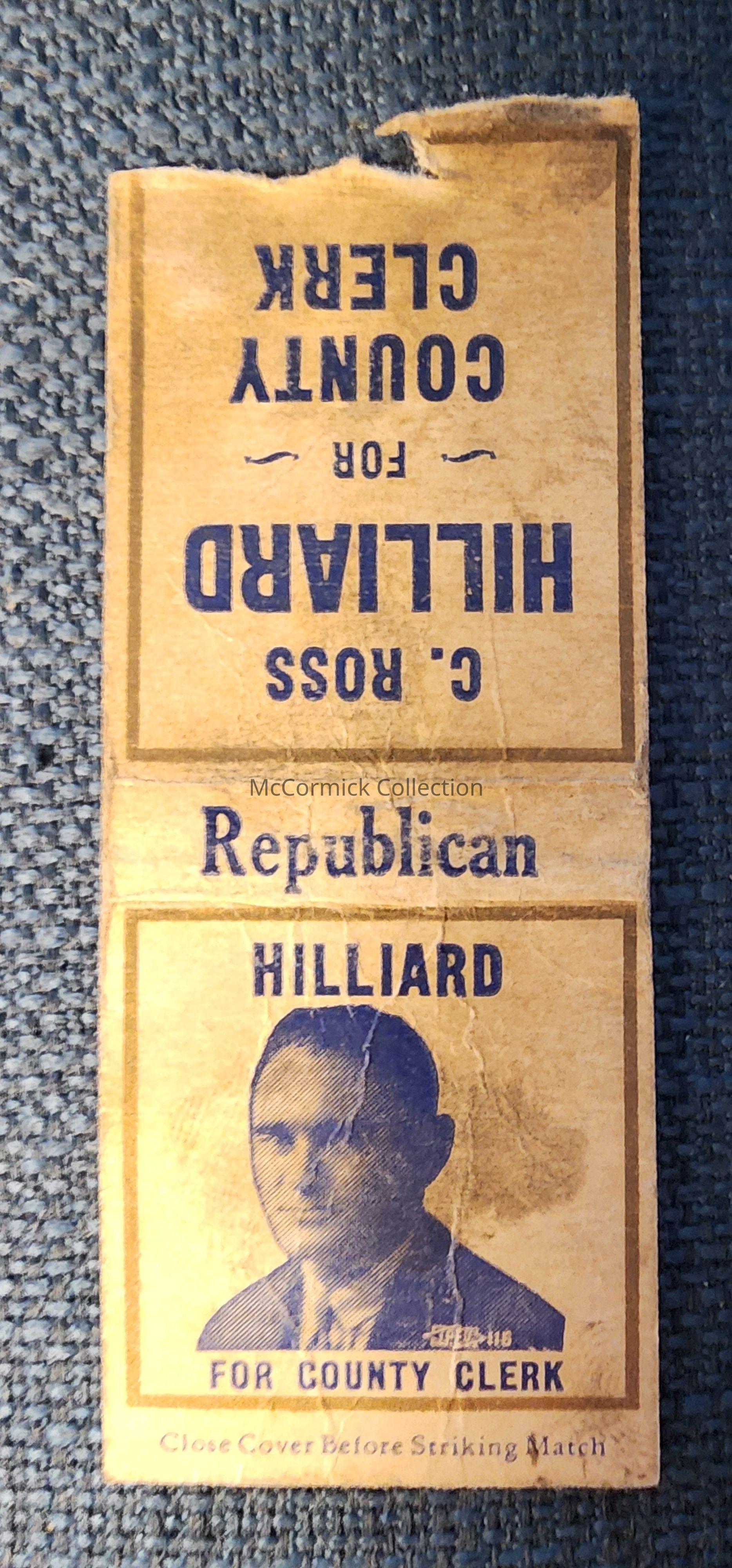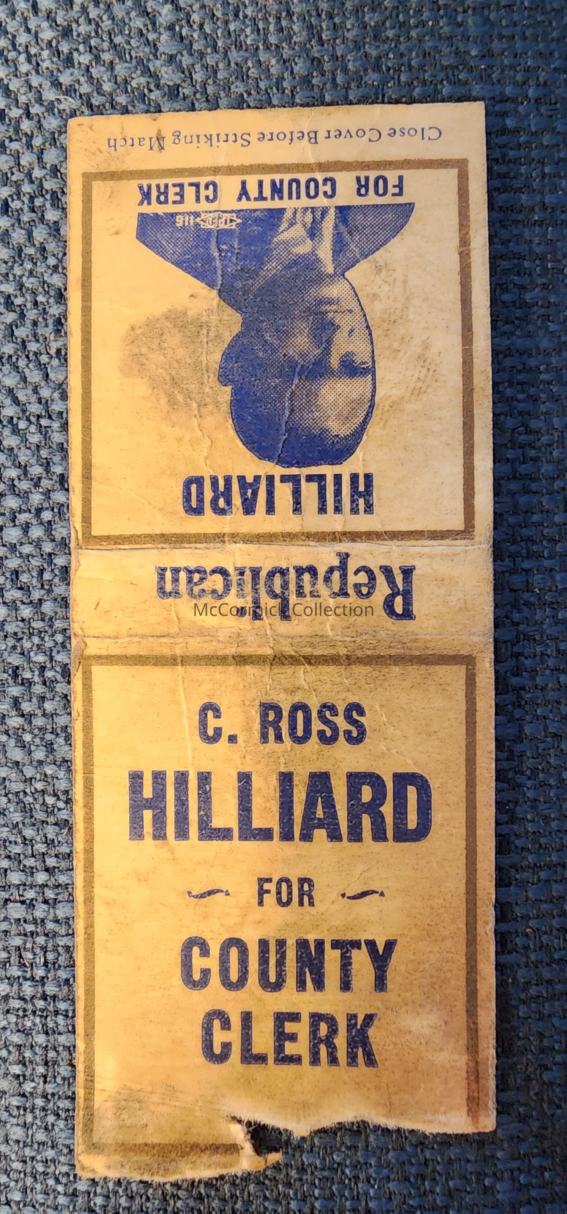 Matchbook for C. Ross Hilliard for Ingham County Clerk.