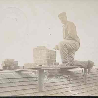 Real photo postcard of a Man working on brick masonry. It is addressed from Portland, Michigan to Mrs. W.B. Cook in Lake, Michigan, from W.B.C. (William B. Cook), a pioneer of Eight Point Lake. Portland postmark.