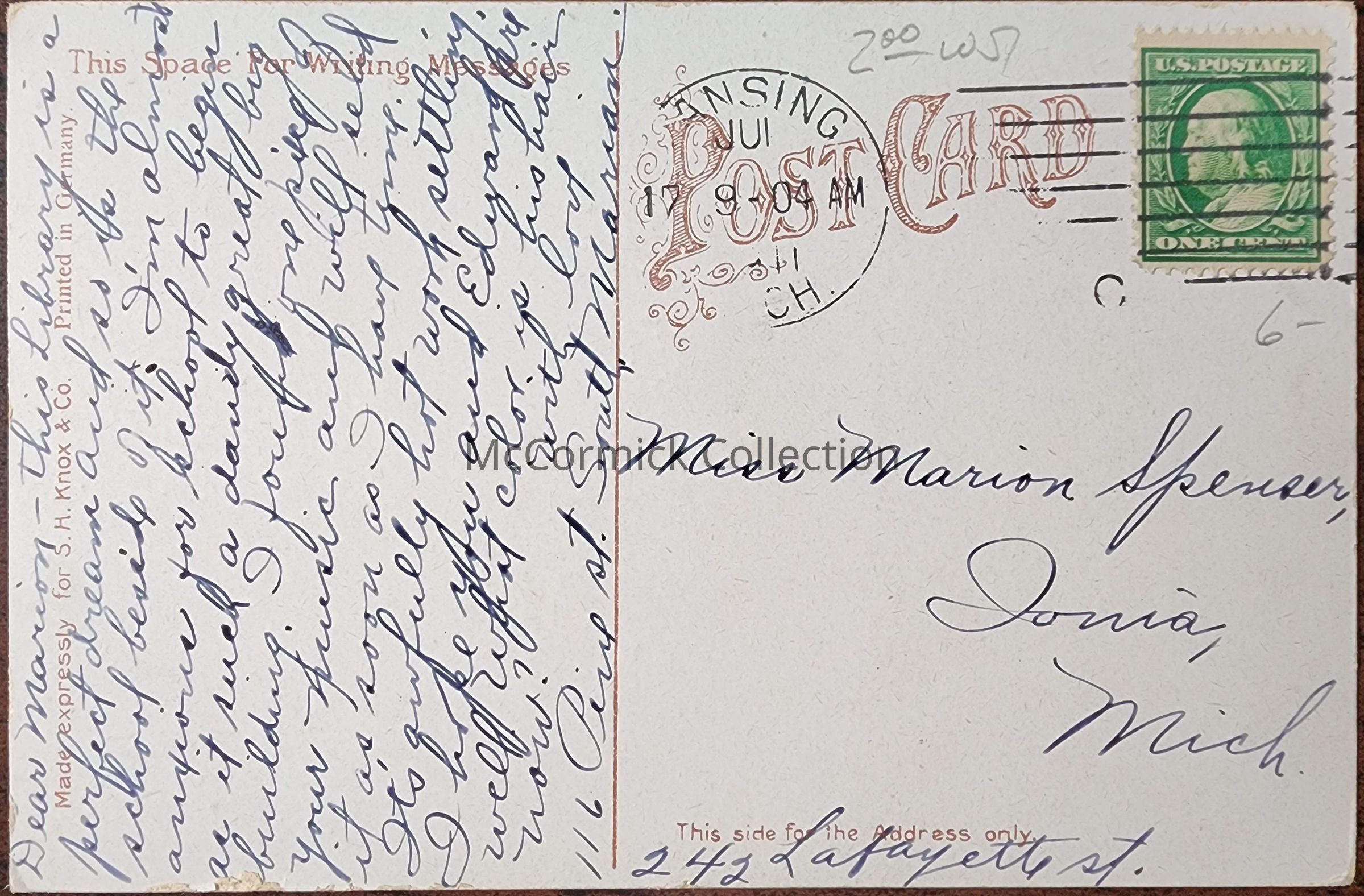Carnegie Library, Lansing, Mich. Postcard