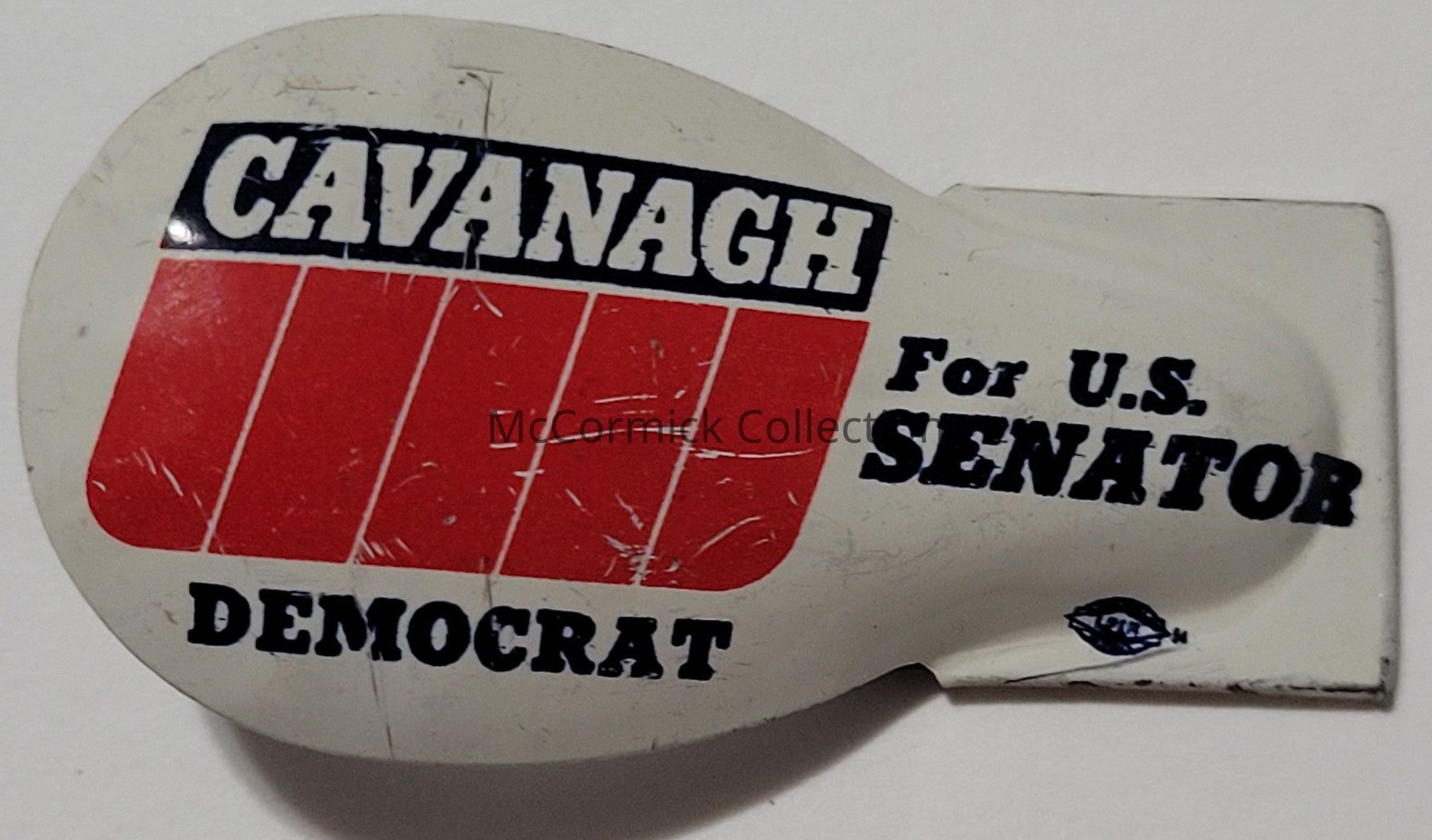 Metal political campaign clicker for Jerome P. Cavanagh for U.S. Senator, circa 1966. He lost in the primary to G. Mennen Williams.