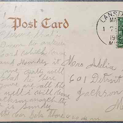 Postcard of the Foot Bridge on South Street over the Grand River in Lansing, Michigan. Postally used, 1912 Lansing postmark.