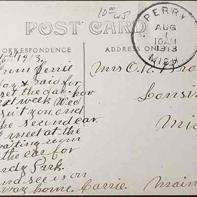 Real photo postcard of Perry, Michigan, Main Street after the 1913 fire. Postally used, 1913 Perry postmark.