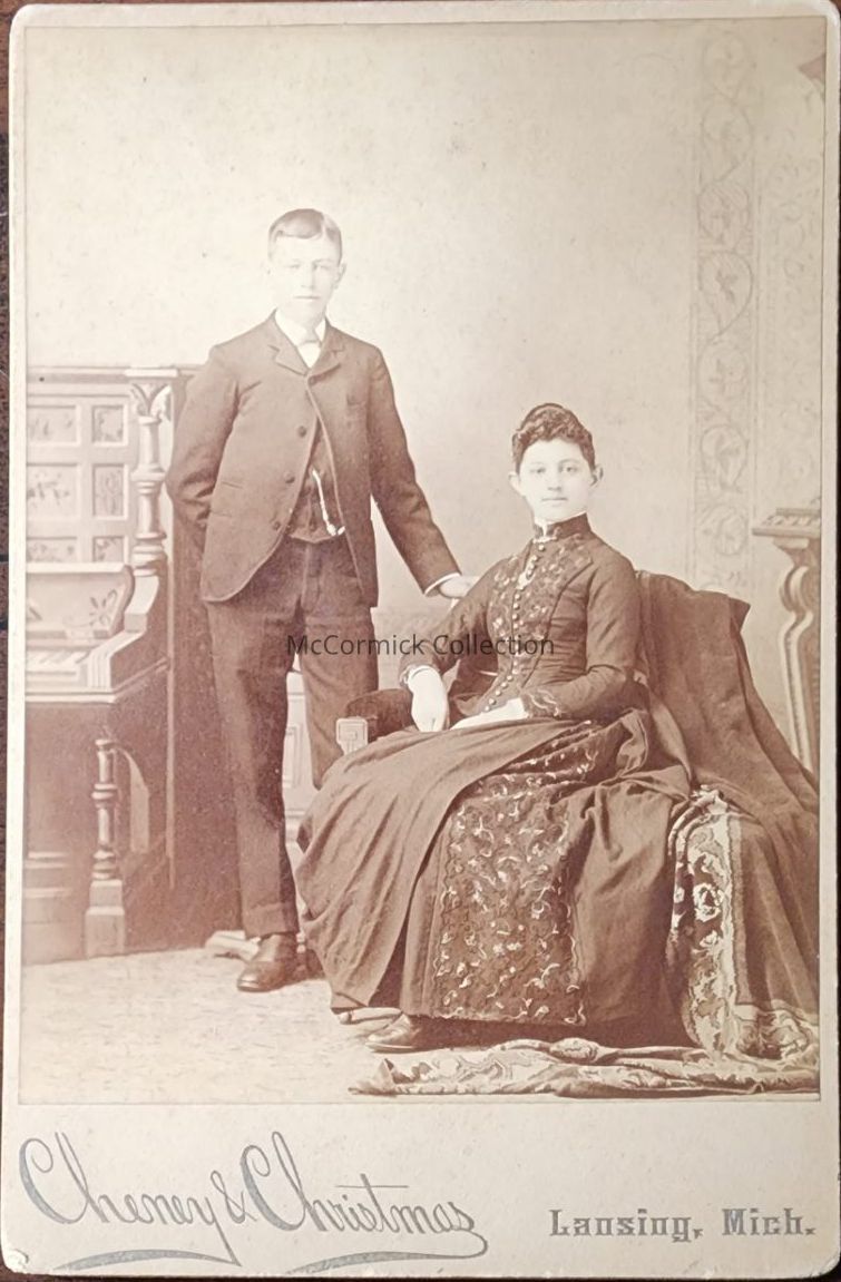Cabinet card photograph of Celia and Eddie Fairr or Faiver (sp) by Lansing photographer Cheney and Christmas.