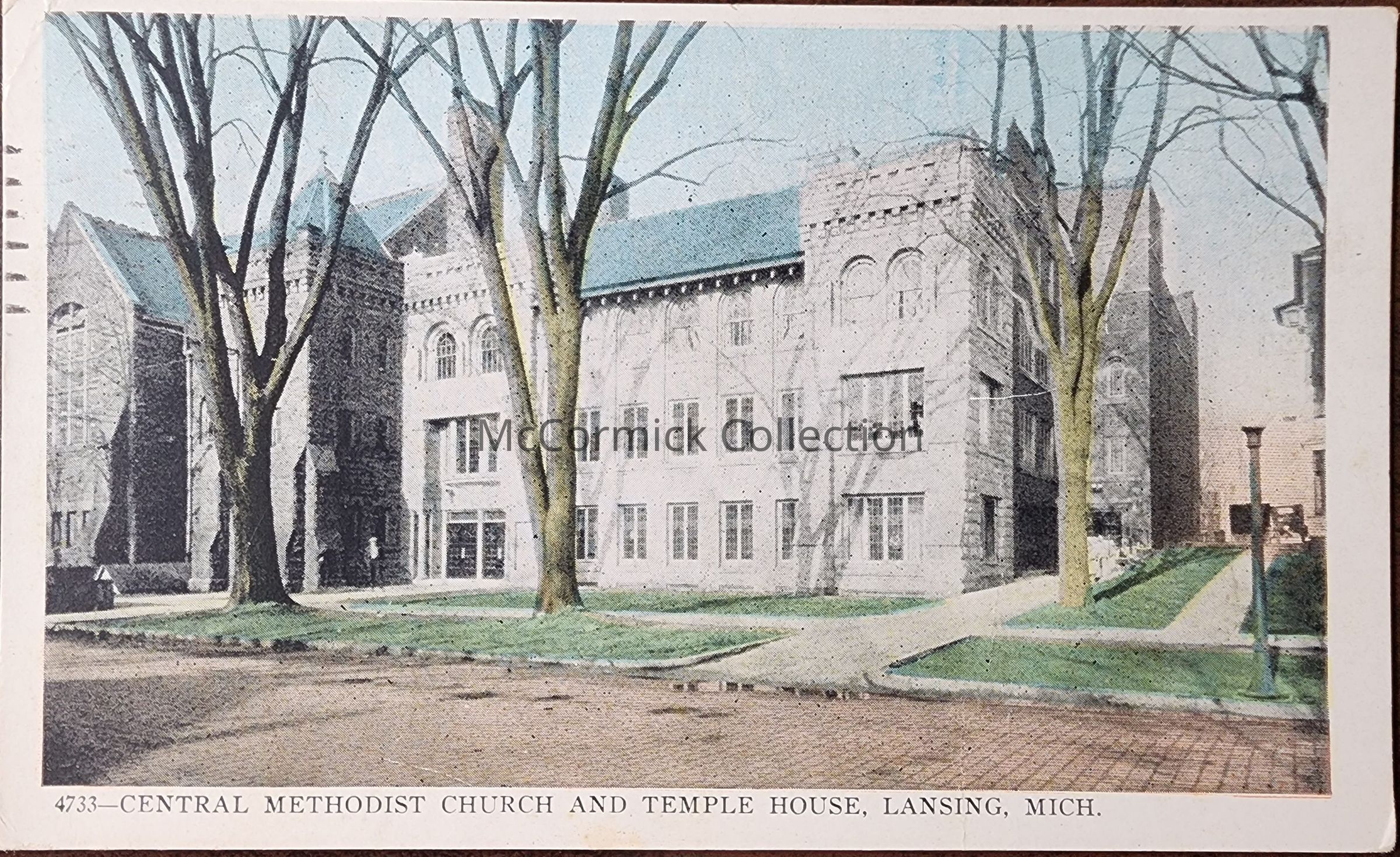 Central Methodist Church and Temple House, Lansing, Mich. Postcard