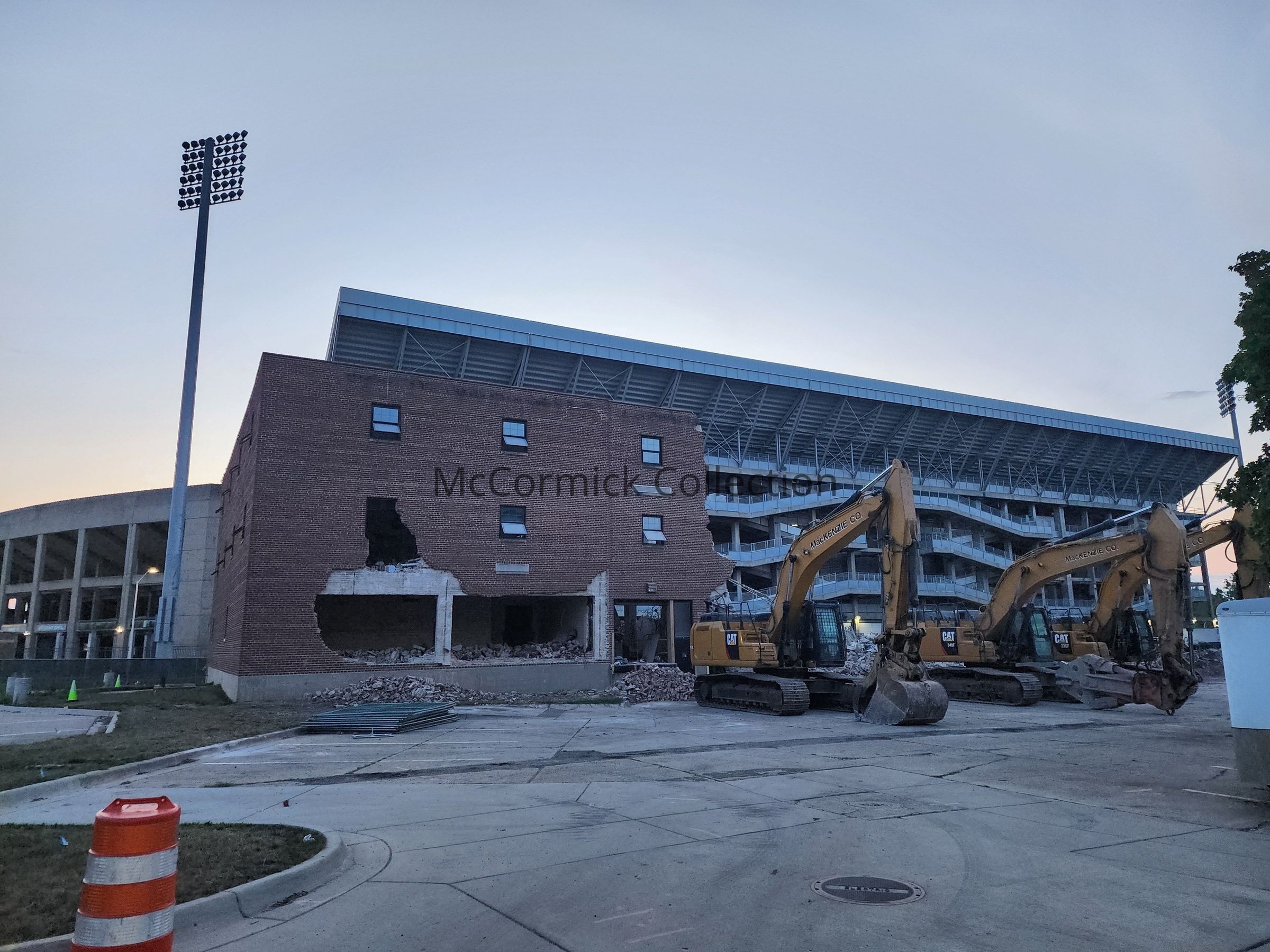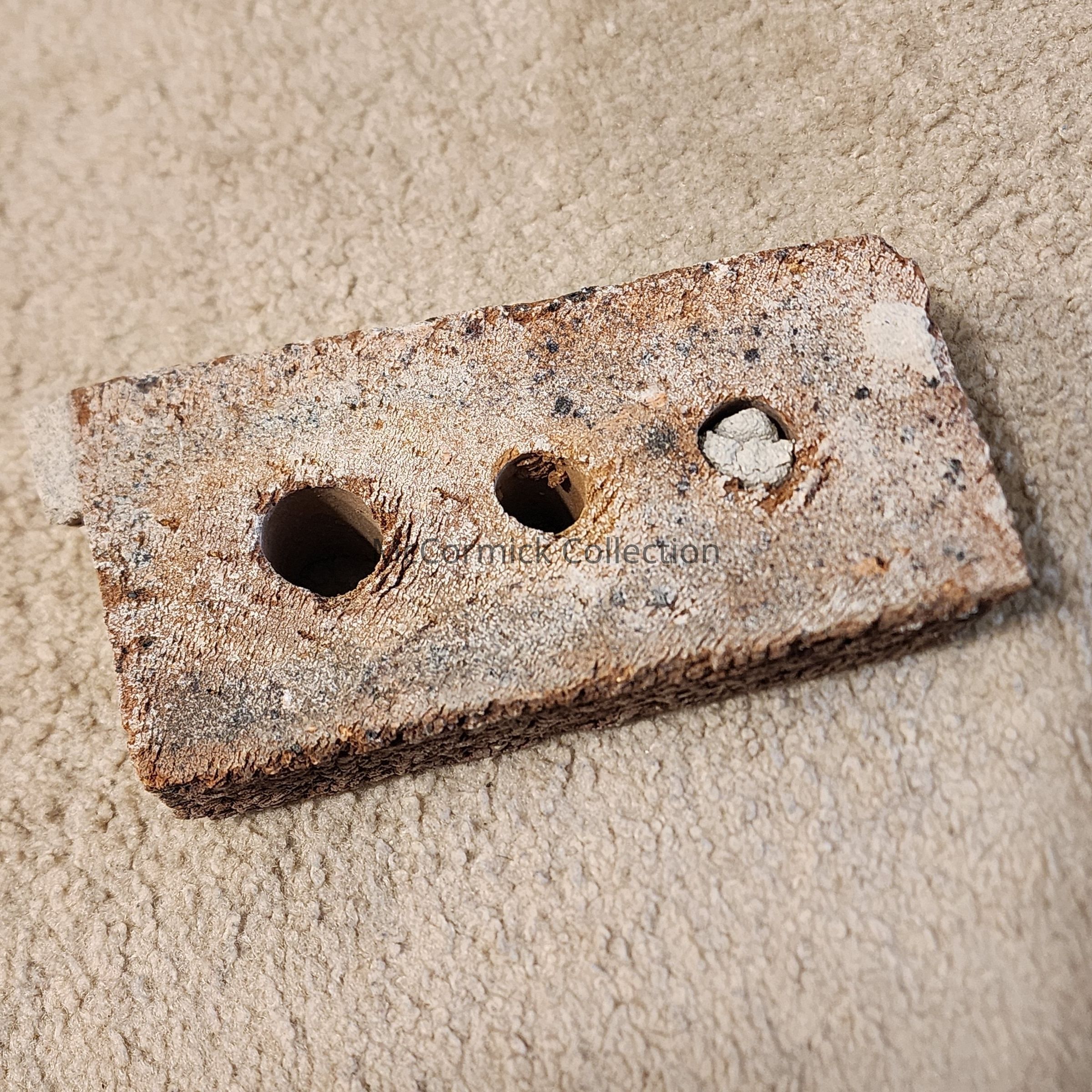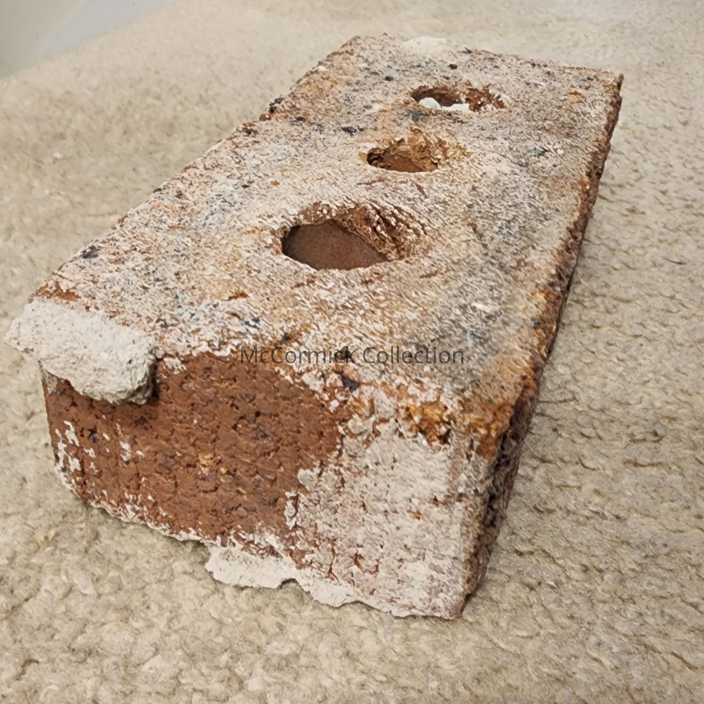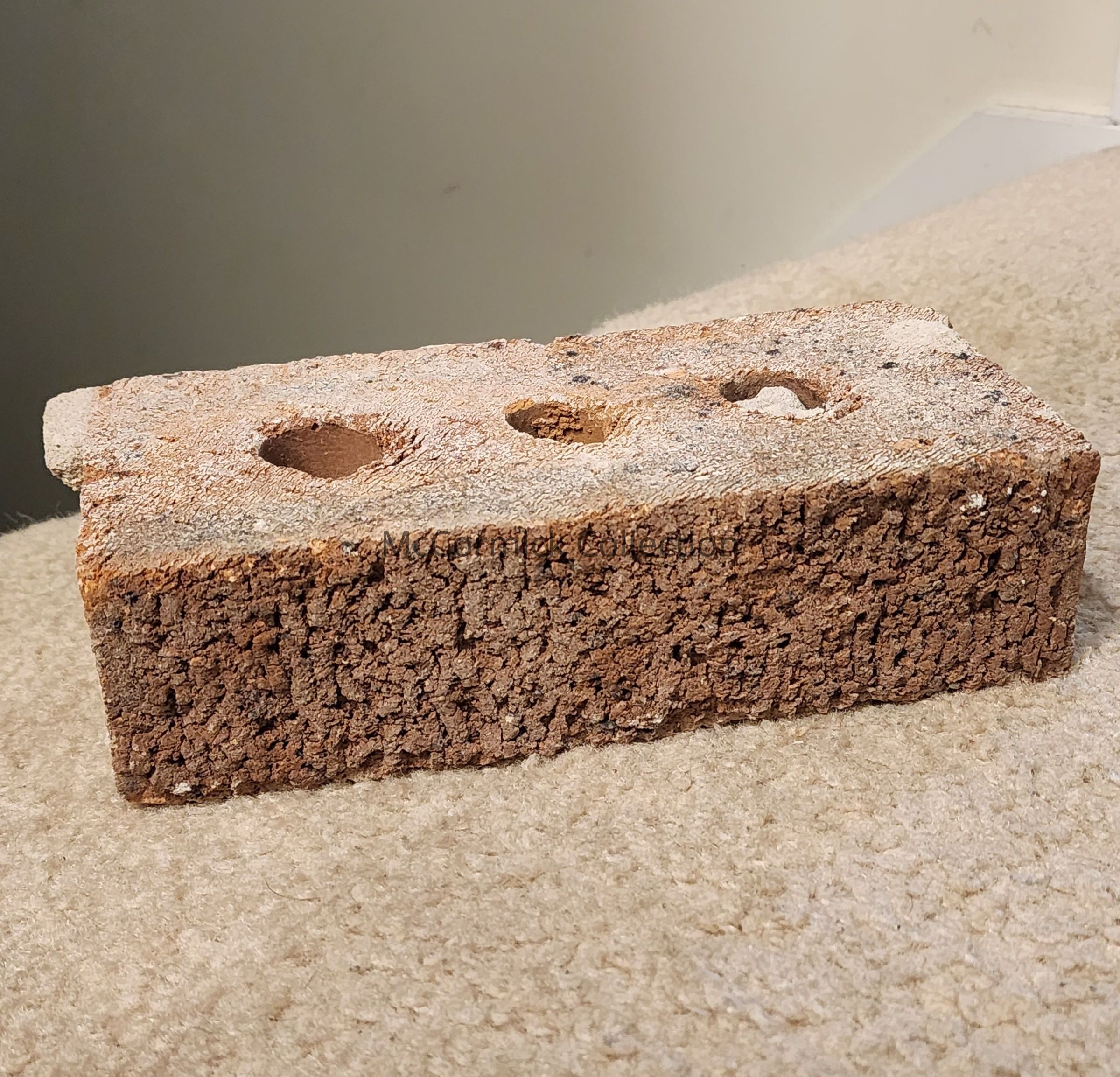 A brick salvaged from the demolition of Michigan State University's Central Services building on August 8, 2025. Built in 1948, Central Services was originally the home of campus-wide food preparation, but eventually became, in part, home to the collections of the MSU Museum.