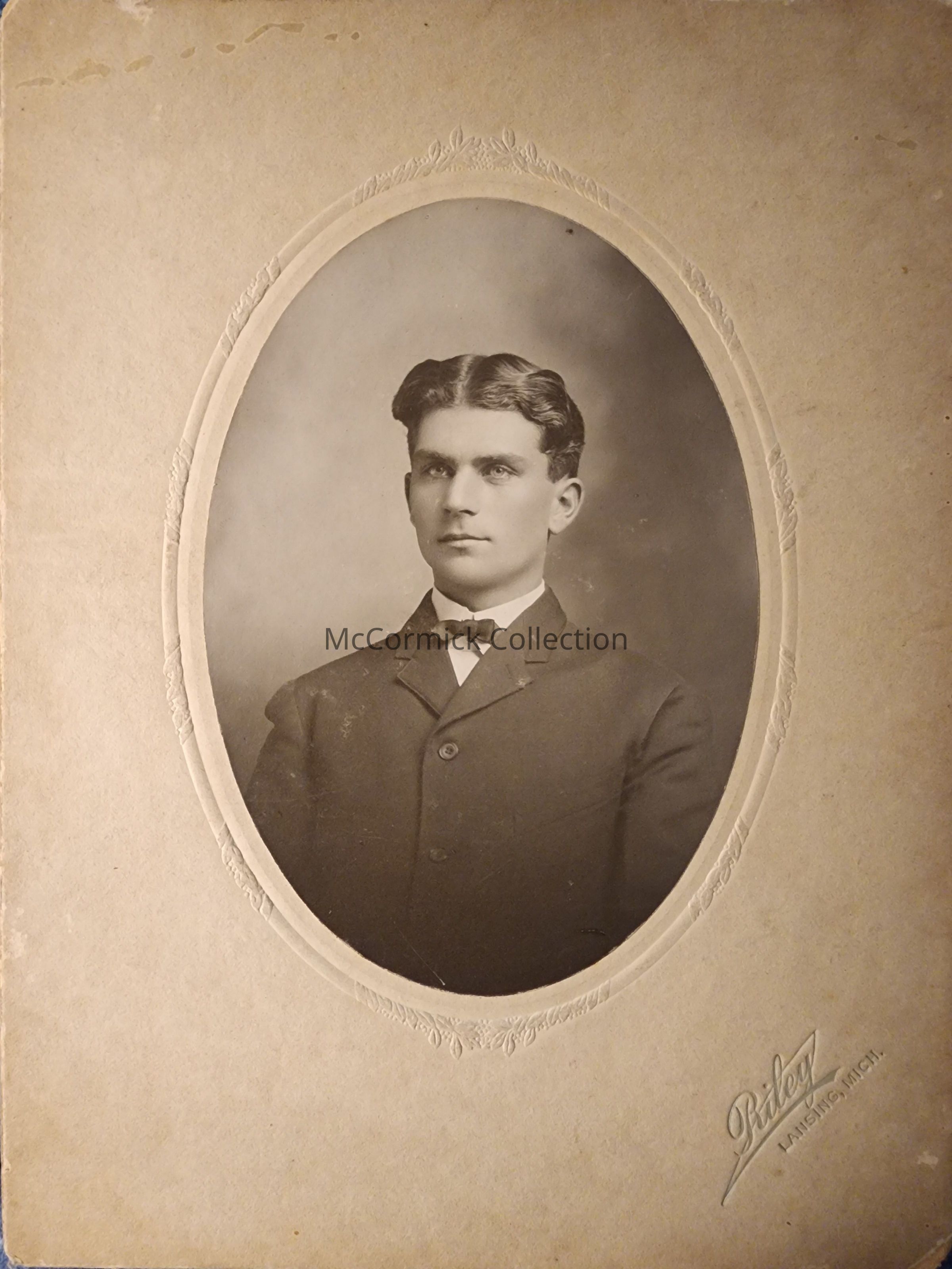 Card mounted photograph of Charlie Oppenlander by Lansing photographer Riley.