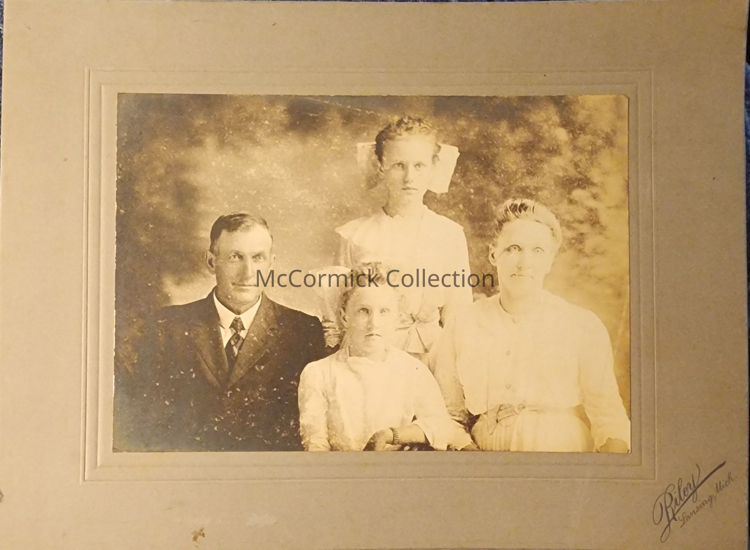 Card mounted photograph of the Charles Hale family by Lansing photographer Riley.