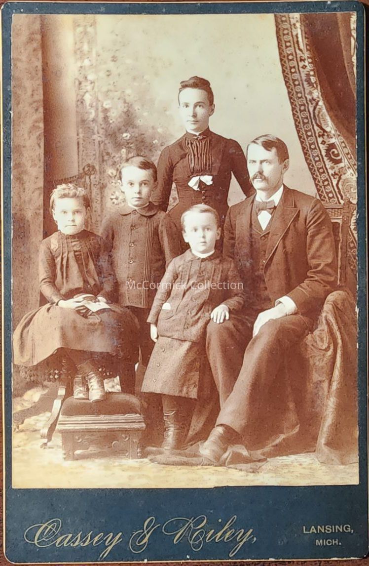 Cabinet card photograph of the Chase family by Lansing photographer Cassey and Riley.