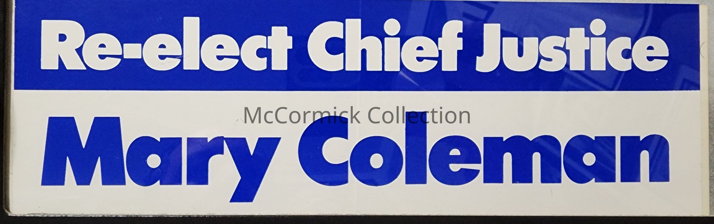 A blue and white political bumper sticker for the Reelection of Chief Justice Mary Coleman.