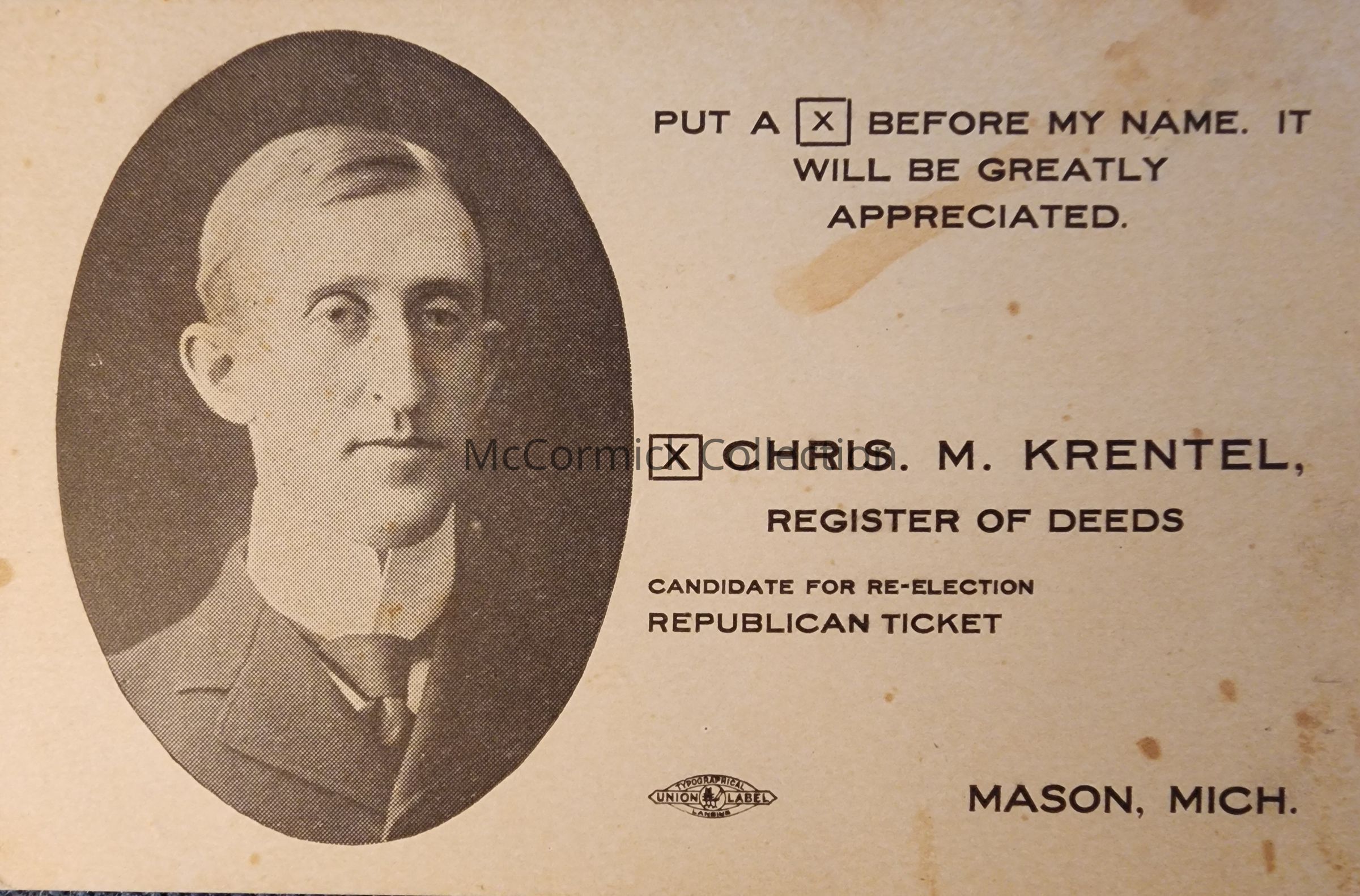 Chris M. Krentel for Register of Deeds Palm Card