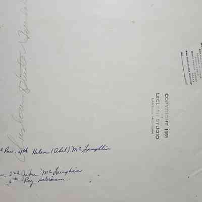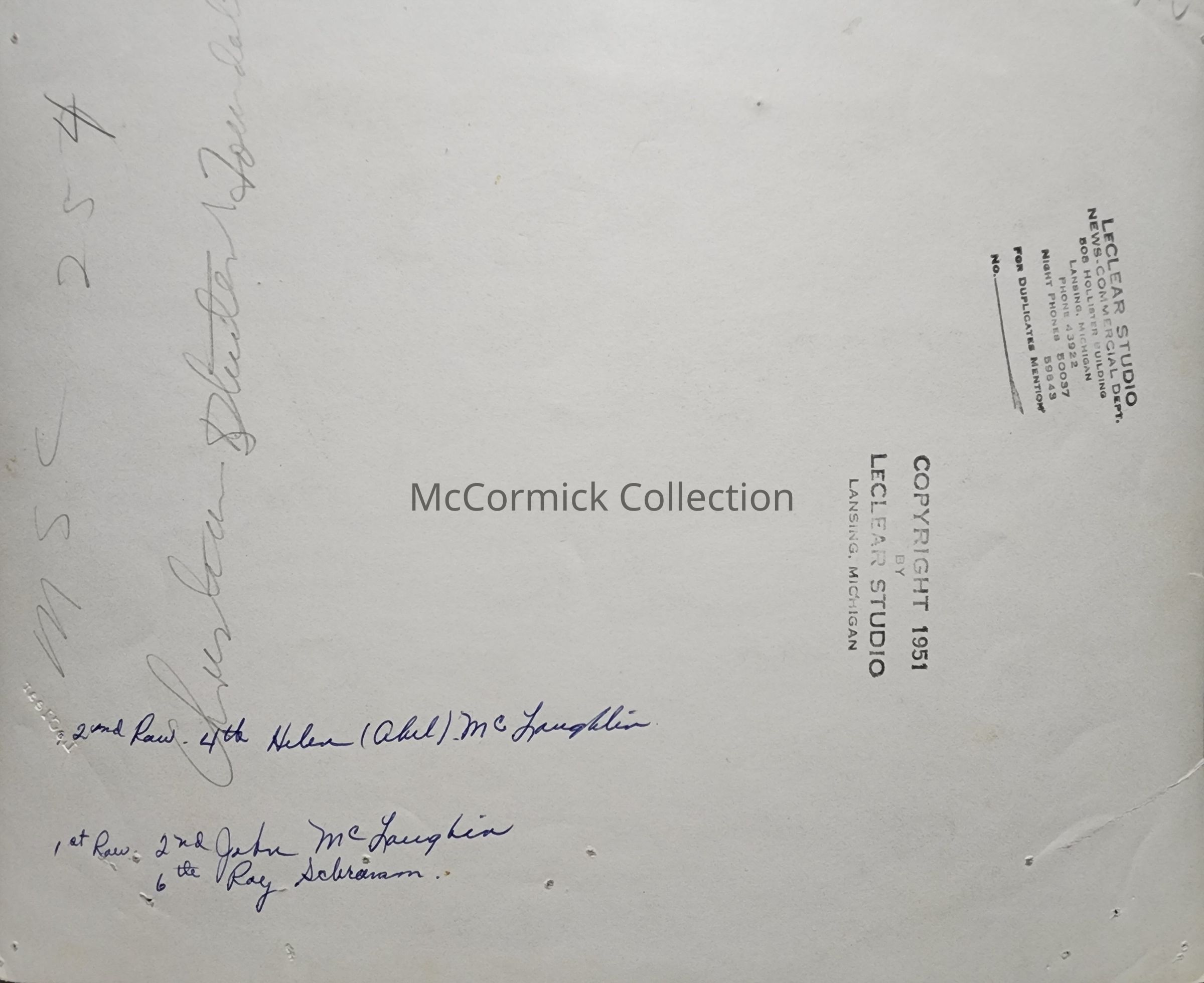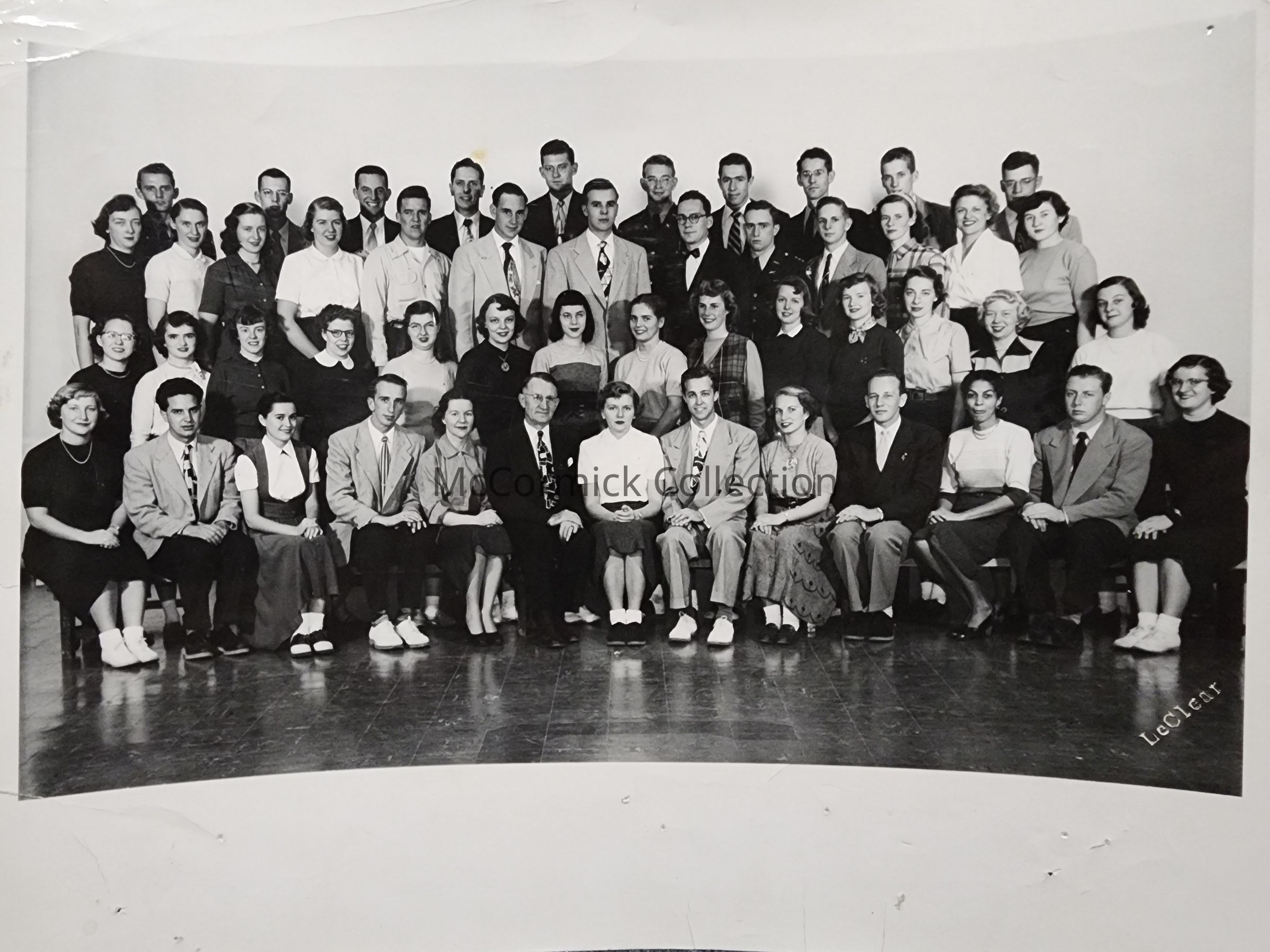Photographic print of a group from the Christian Student Foundation, associated with Michigan State College in East Lansing. Three names written on the back, Helen Abel McLaughlin, John McLaughlin, and Ray Schram.