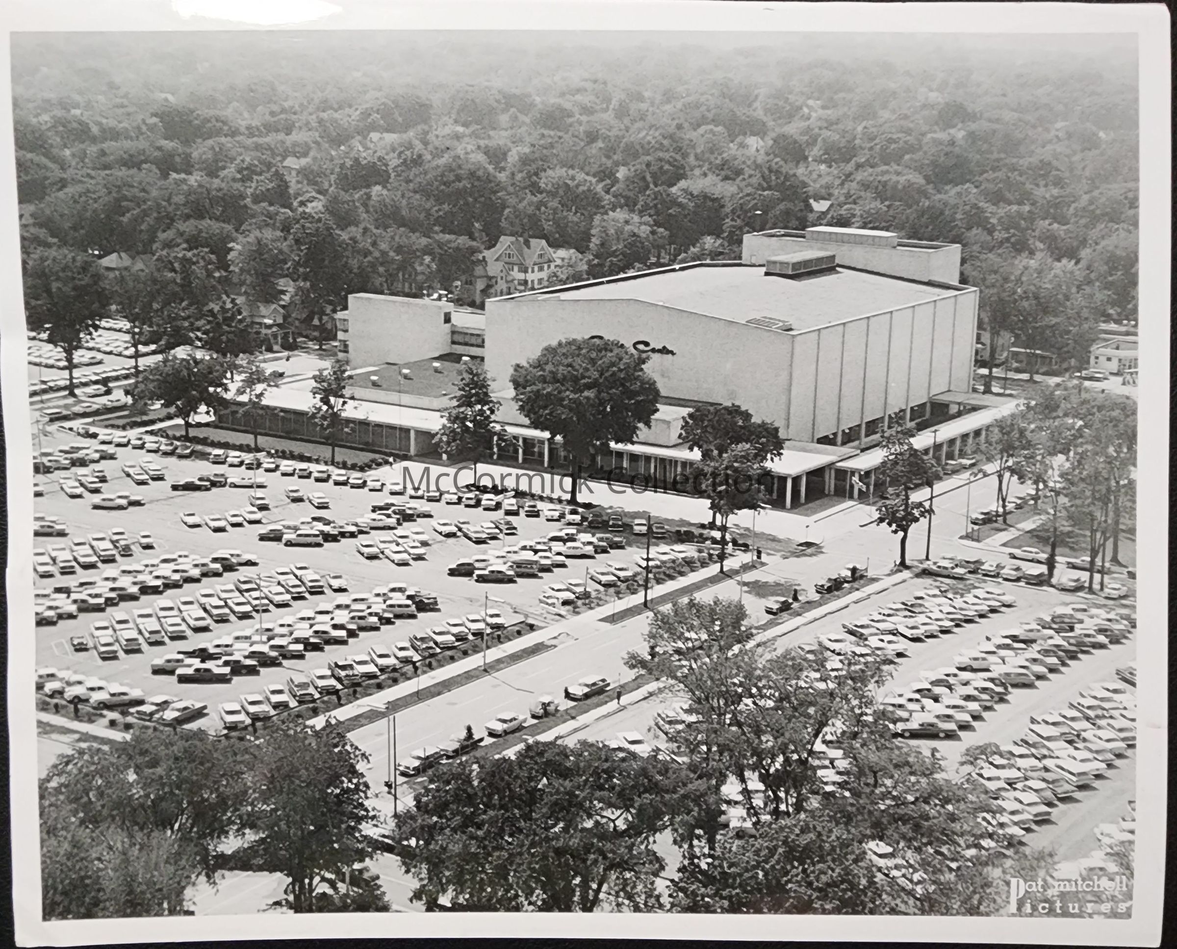 Press photo of an aerial view of the Lansing Civic Center in October 1961.