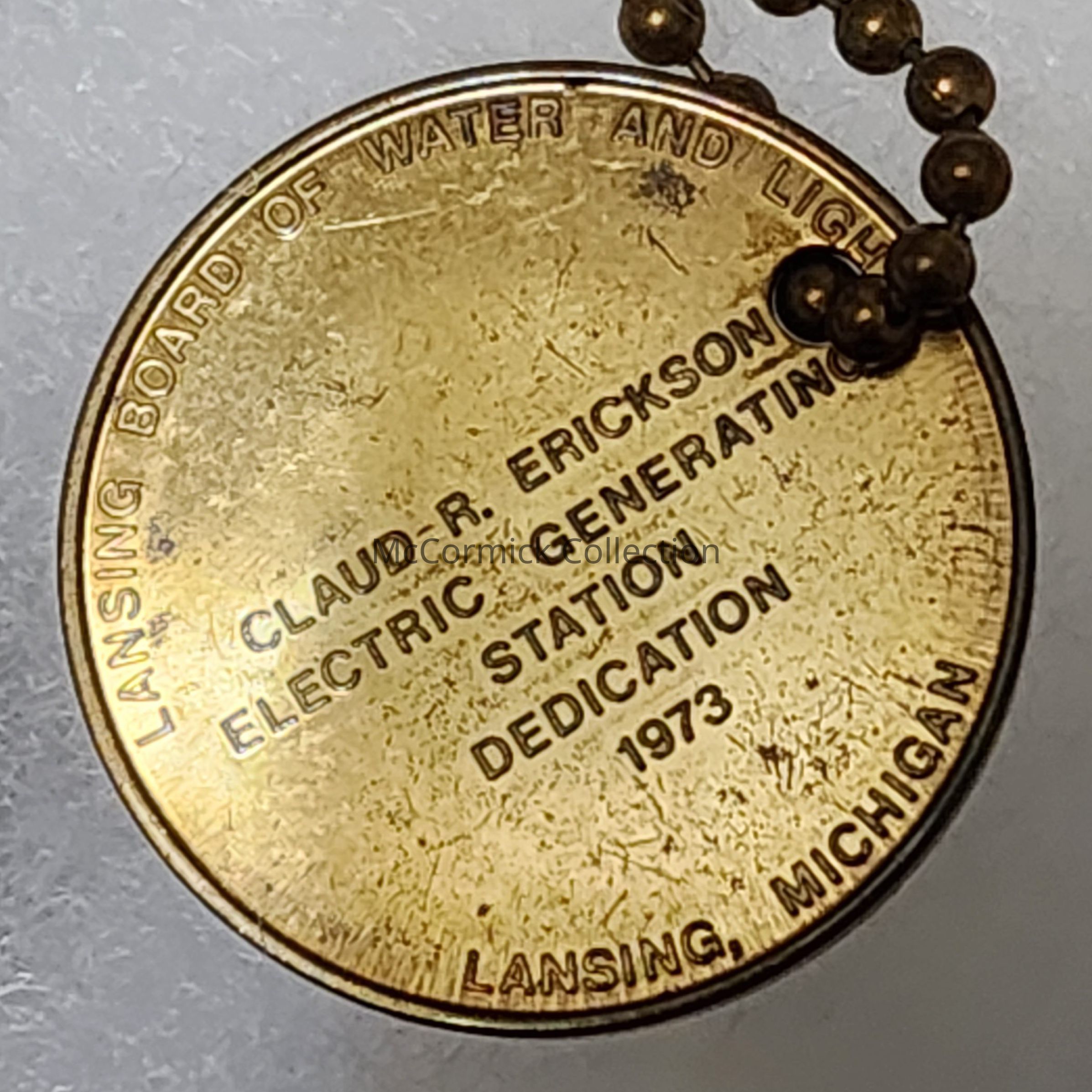 Token from the 1973 opening of Erickson Generation Station in Lansing. Erickson was the head of Board of Water and Light and had been a delegate to Con Con.