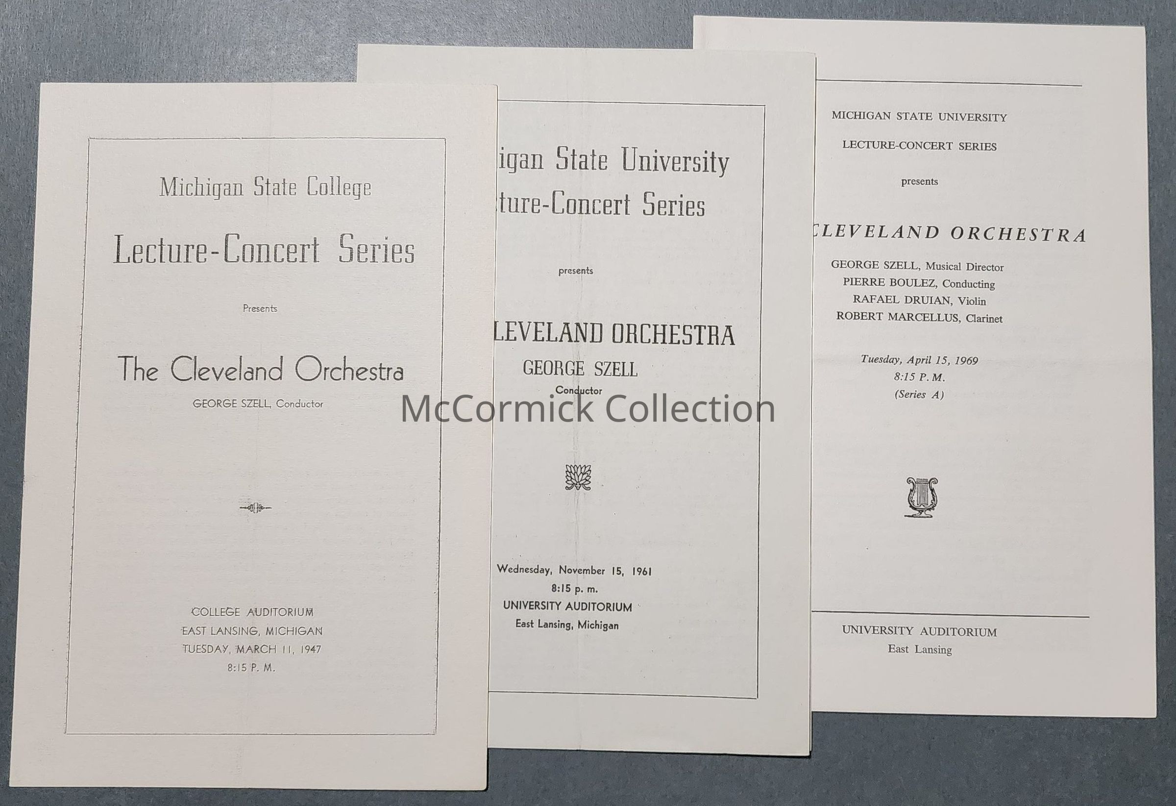 Cleveland Orchestra, MSC & MSU Concert Programs, 1947, 1961, & 1969
