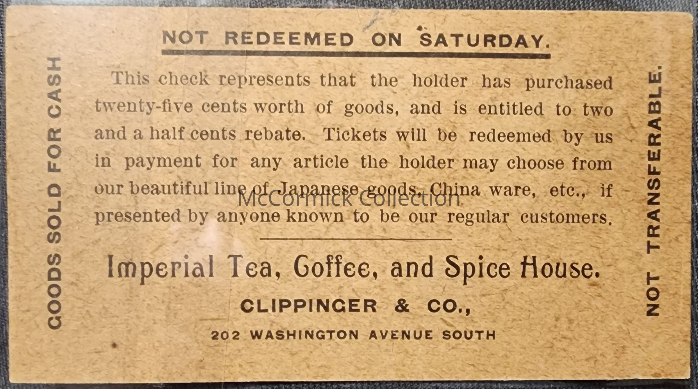 Clippinger & Co. Imperial Tea, Coffee, and Spice House Advertising Card