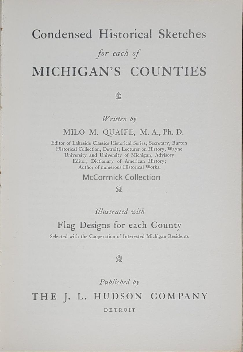 Condensed Historical Sketches for each of Michigan's Counties by Hudson Company (1940)
