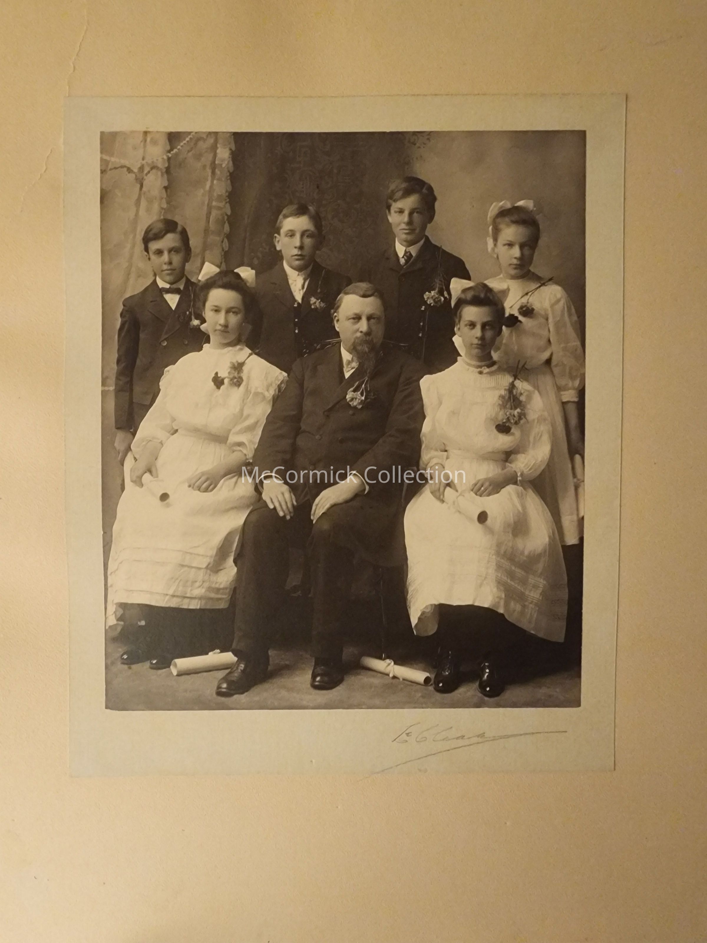 Oversize card mounted photograph of a likely Confirmation group photograph by Lansing photographer LeClear.