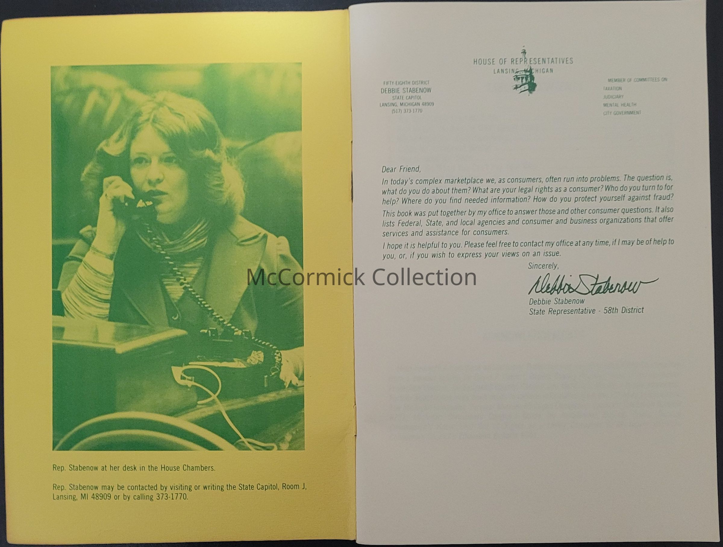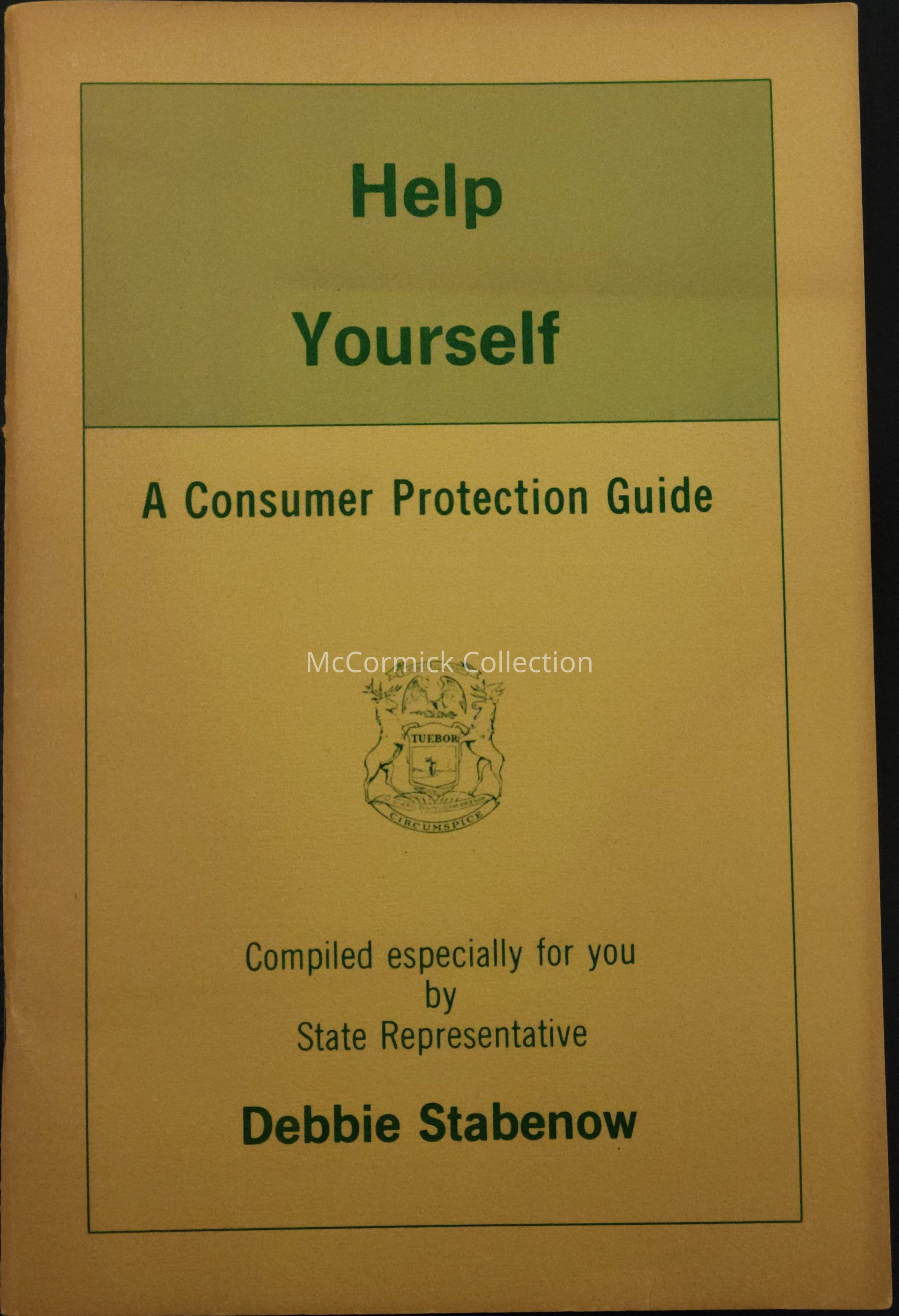 Consumer Protection self-help guide booklet distributed by State Representative Debbie Stabenow, circa 1970s.