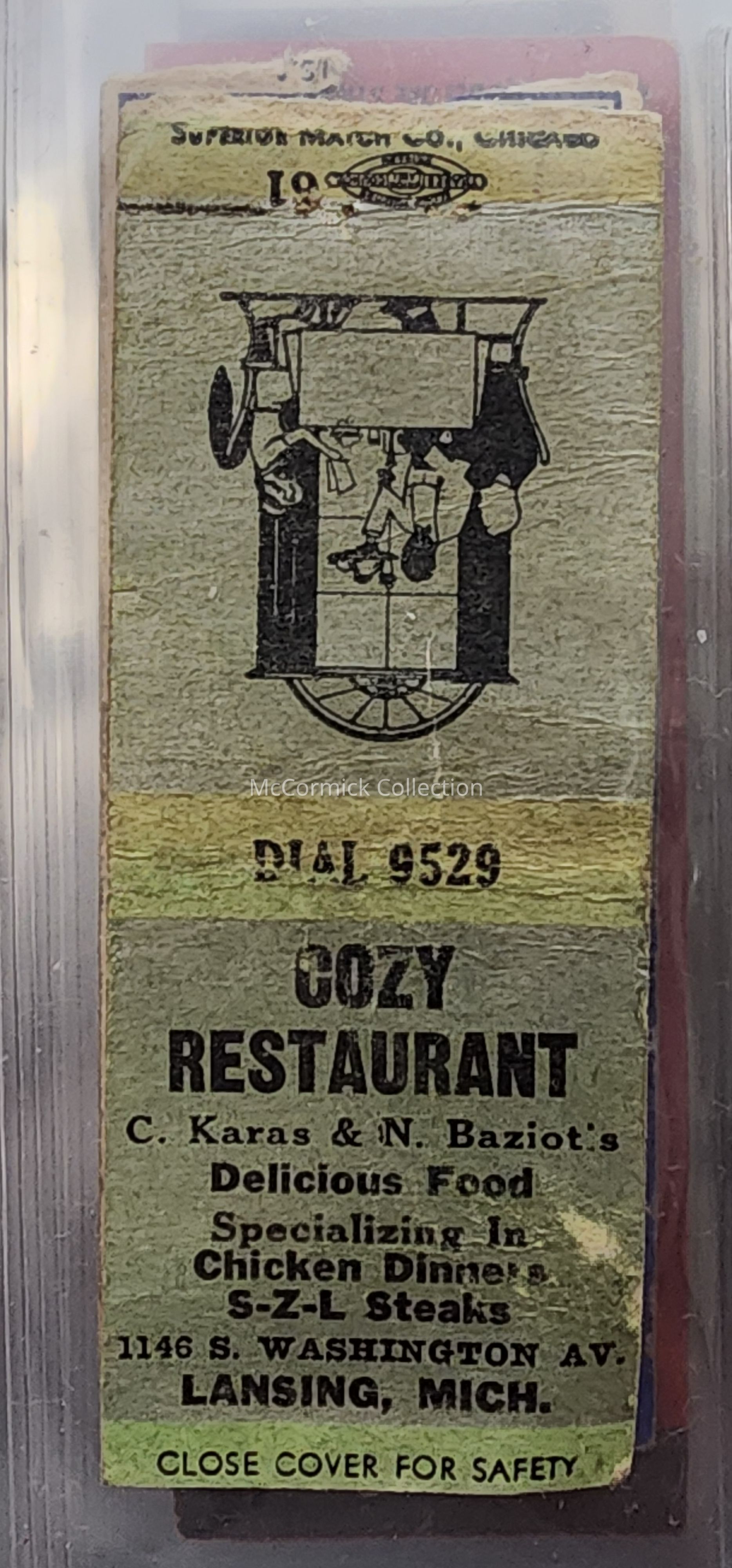Cozy Restaurant, Lansing, Mich., Matchbook