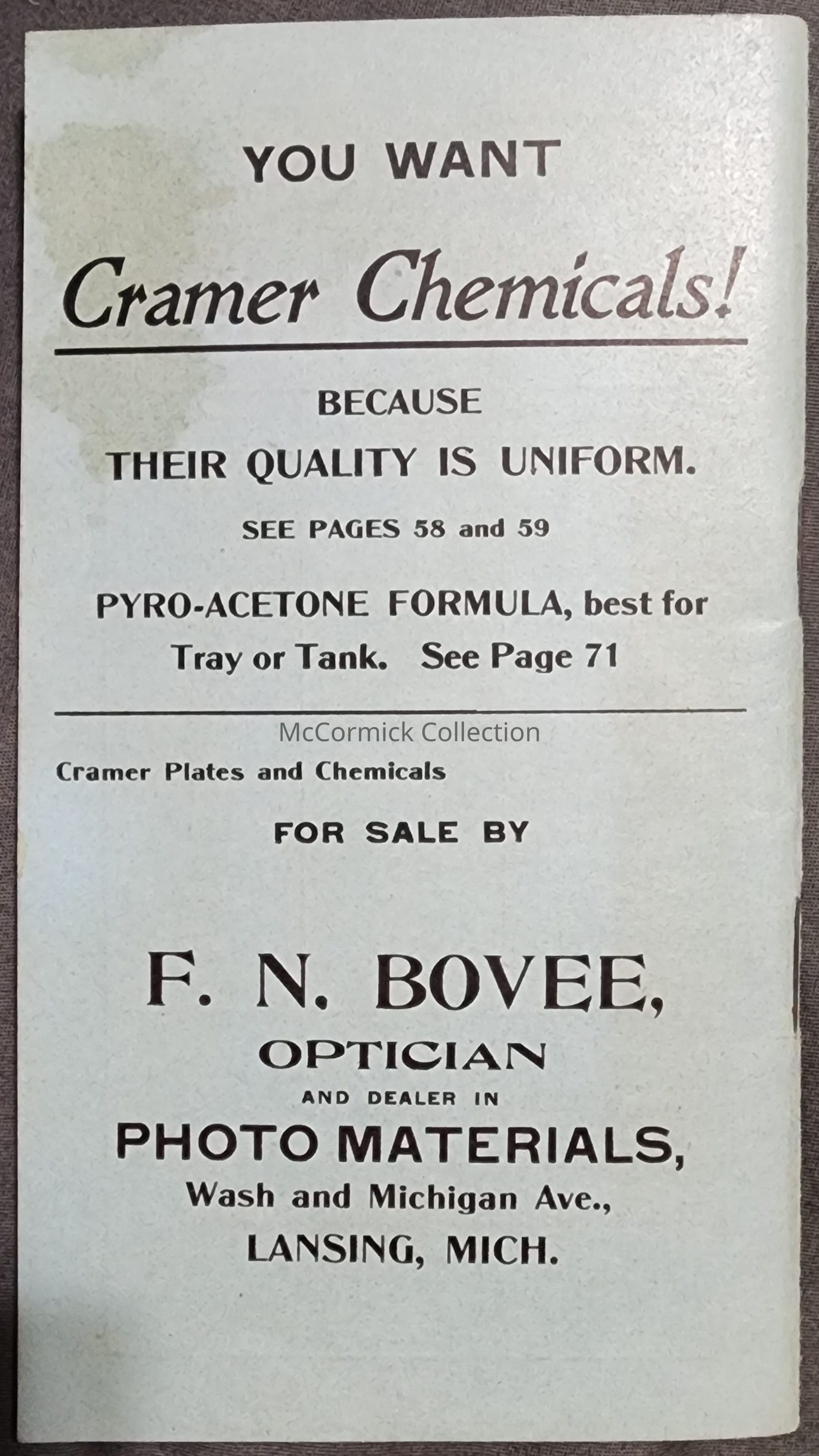 Cramer's Manual on Negative Making, Bovee Advertising