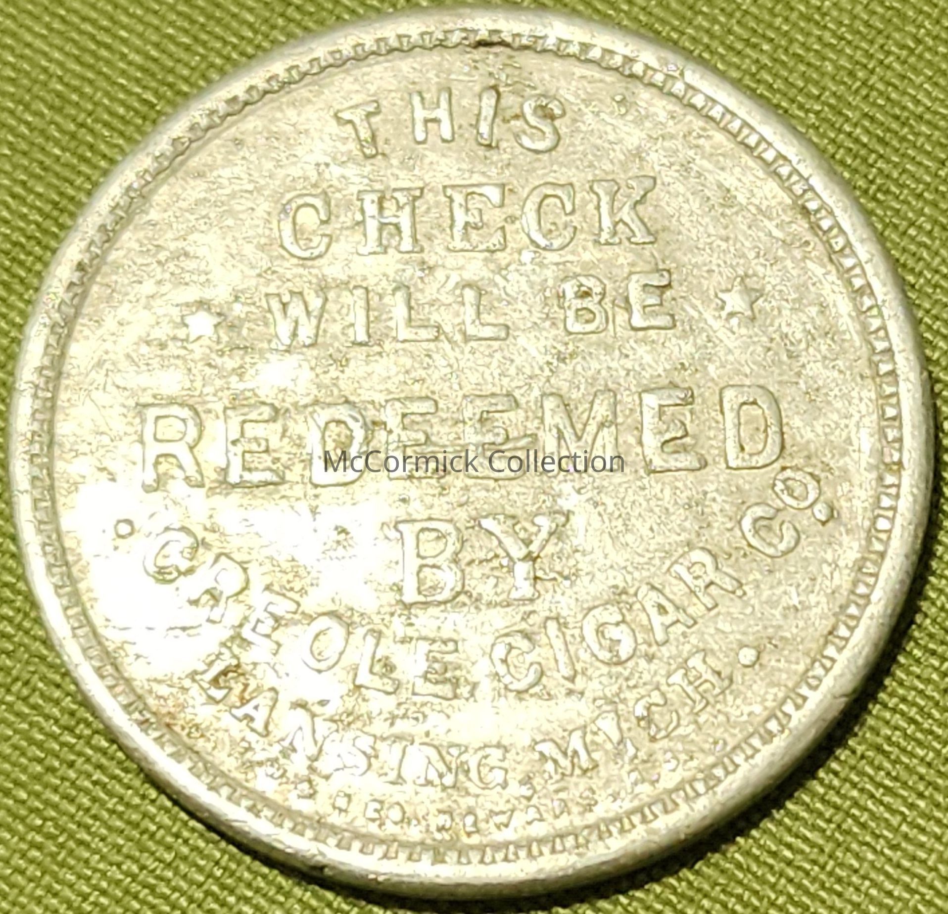 Creole Cigar Co., Lansing, Mich., 5 Cent Trade Token