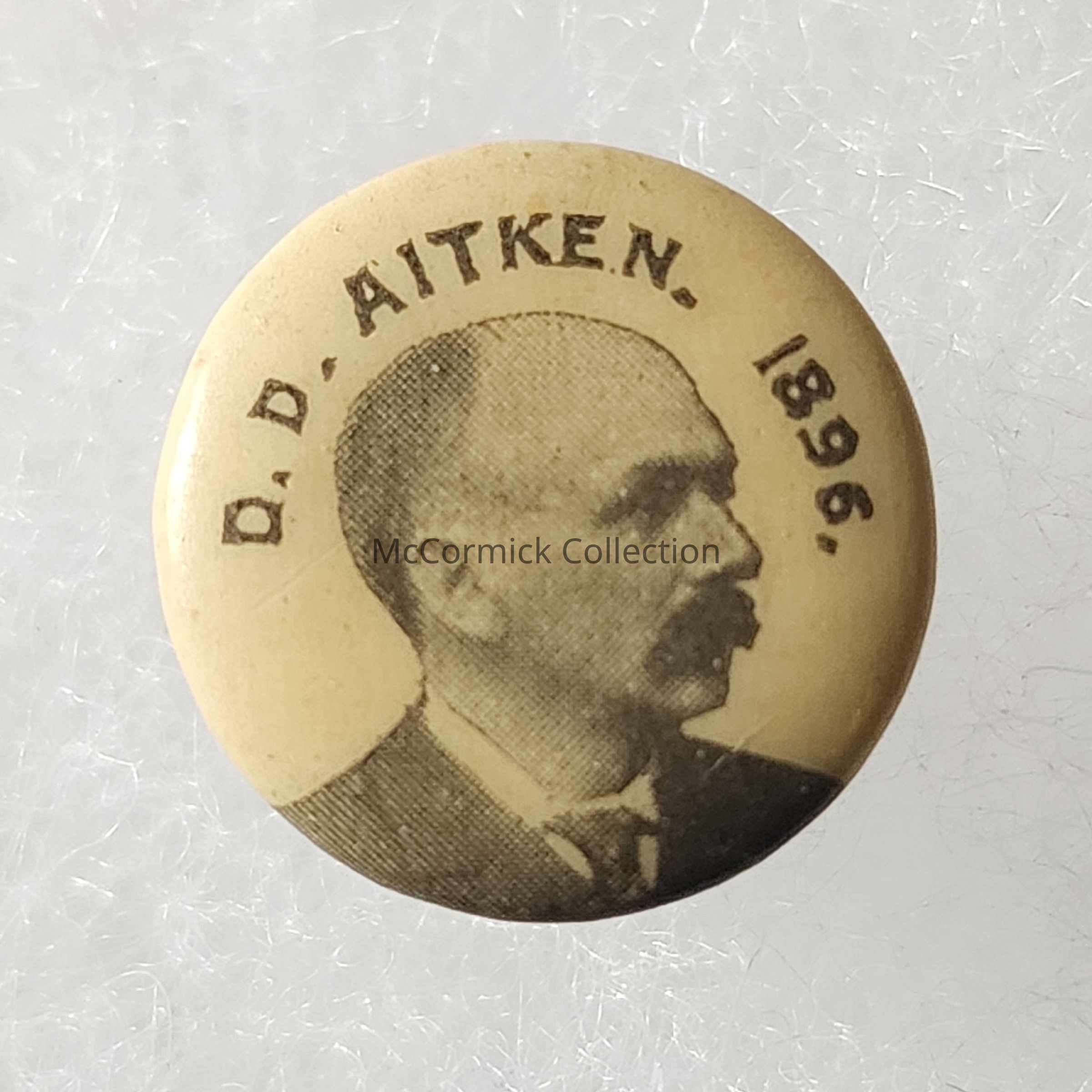 A small cello stud of David D. Aitken for Governor of Michigan in 1896. He had been a Congressman.