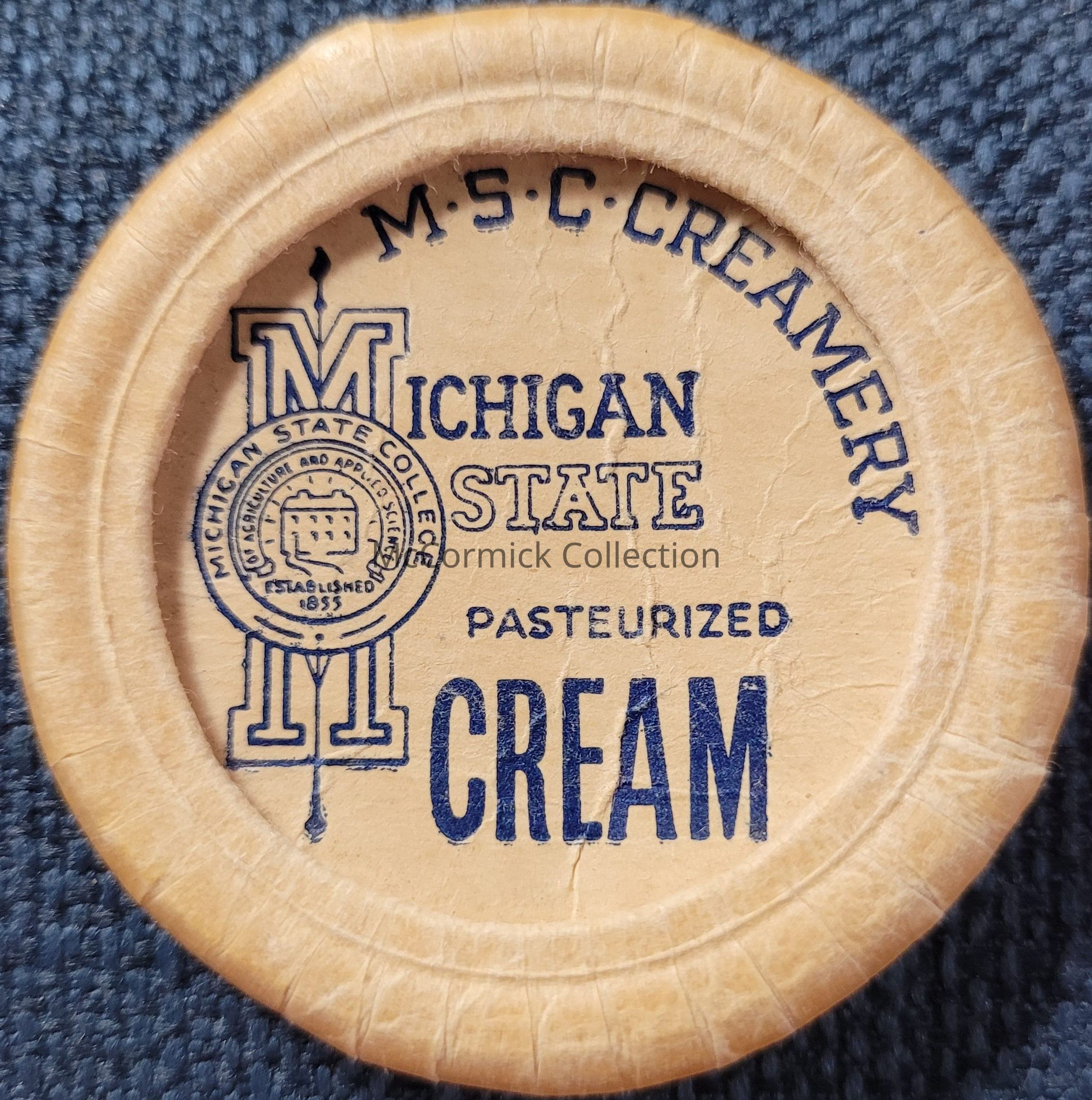 Paper cardboard lid/cap from the Michigan State College Creamery for Pasteurized Cream.
