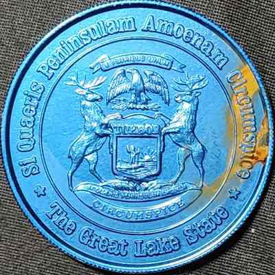 A blue aluminum token from the Michigan State Capitol centennial in 1979. Belonged to my dad from childhood. Have a few duplicates.