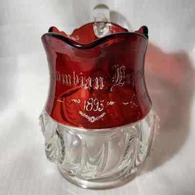Lansing, Mich., Columbian Exposition Ruby Flashed Glass Souvenir Pitcher