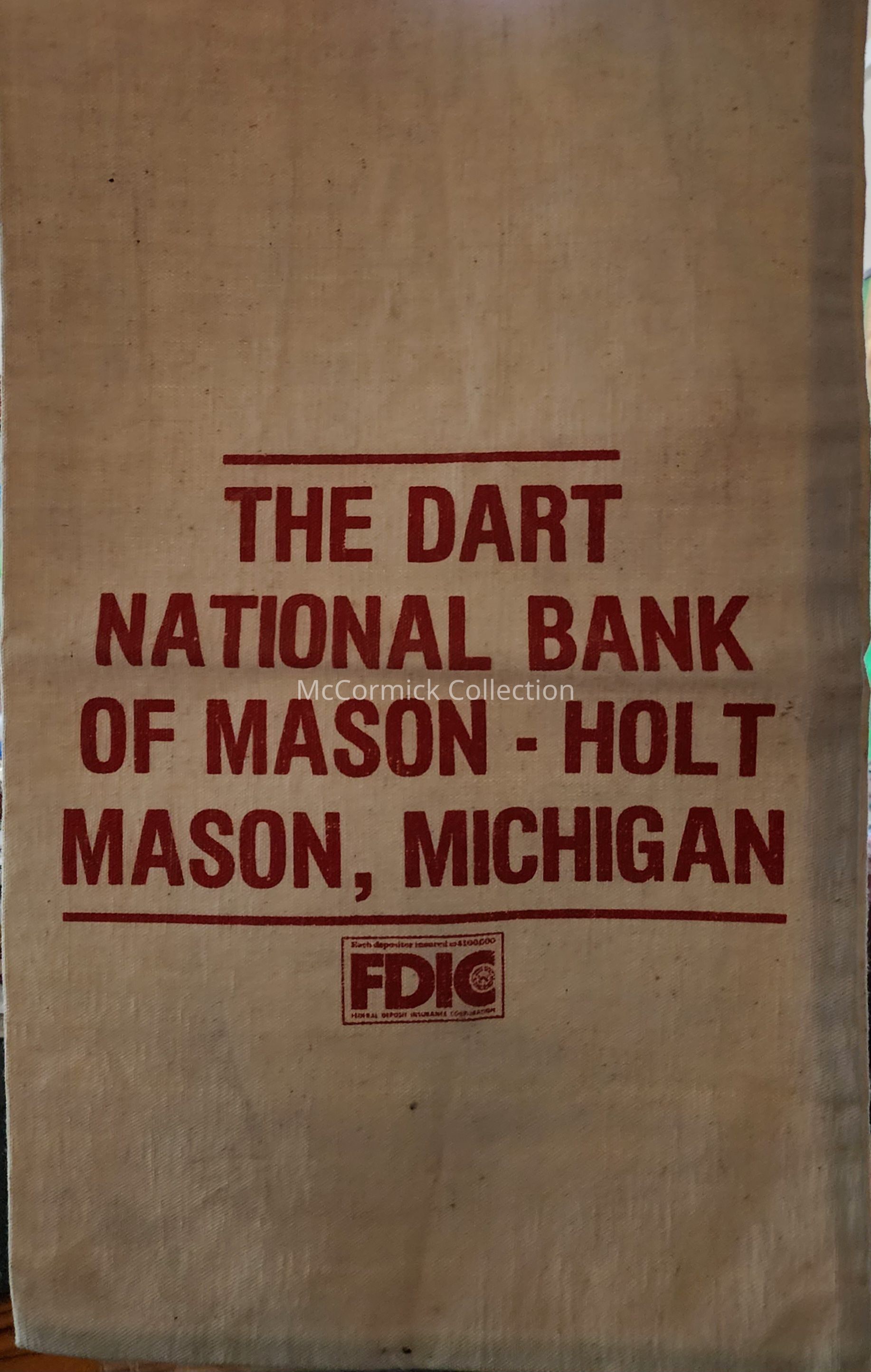 Canvas bank bag for the Dart National Bank of Mason and Holt.