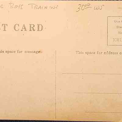 Real photo postcard of the Michigan Industrial School Band in Lansing, Michigan. Kruxo stamp box.