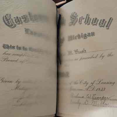 The 1933 Lansing Eastern High School diploma of Marjorie Bush Siebert. Signed by J.W. Sexton. From Siebert Estate.