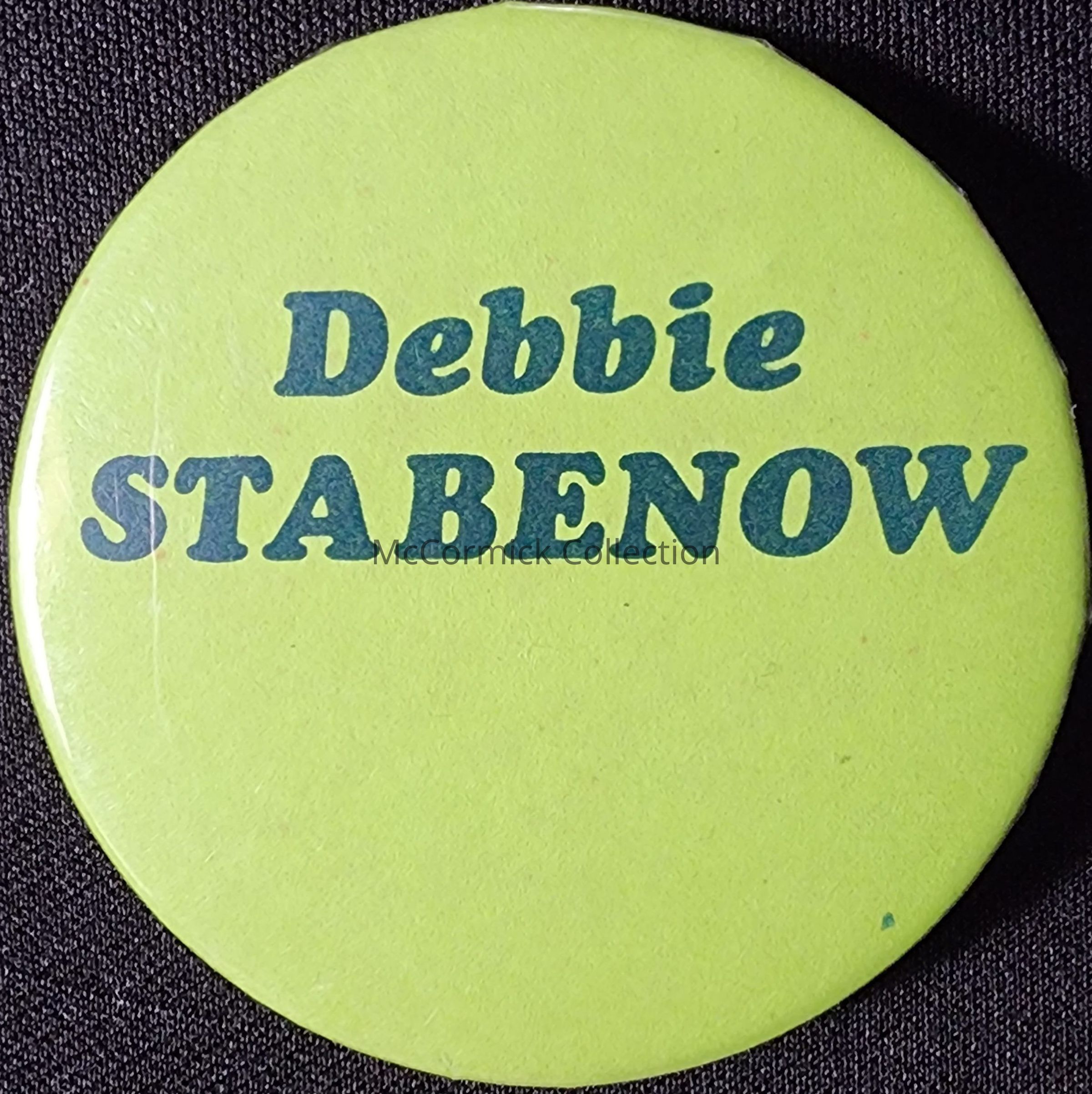 A 2.25" green and blue political button for Debbie Stabenow for State Representative, circa 1980s.